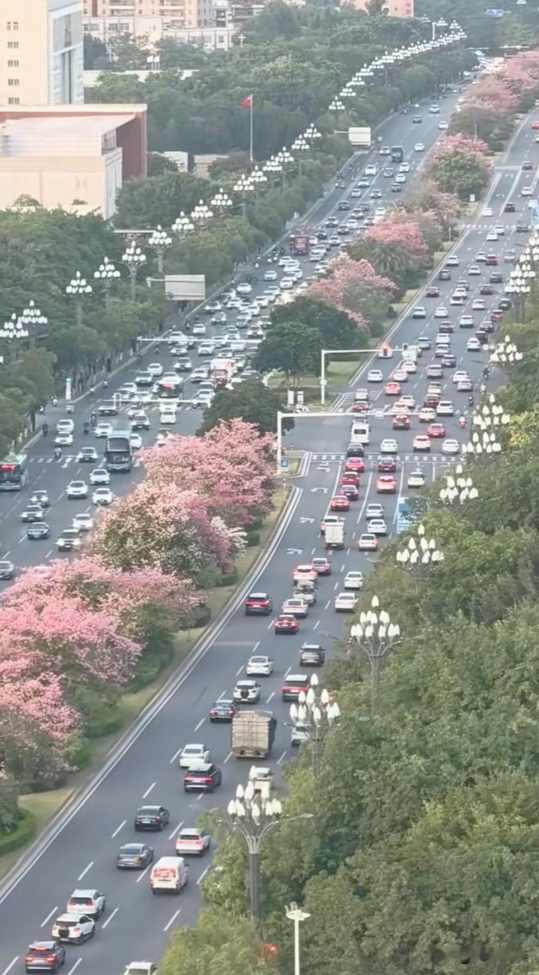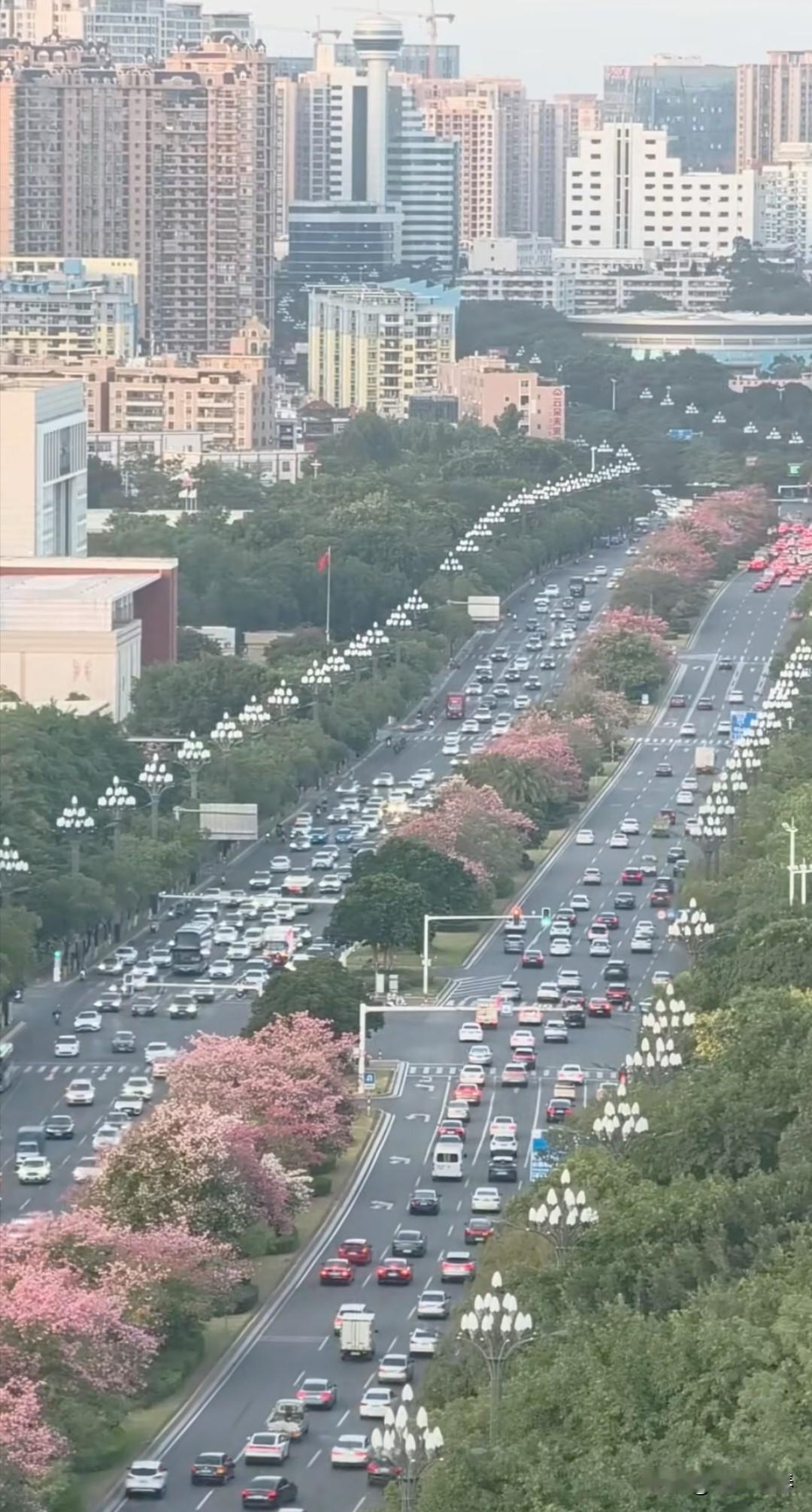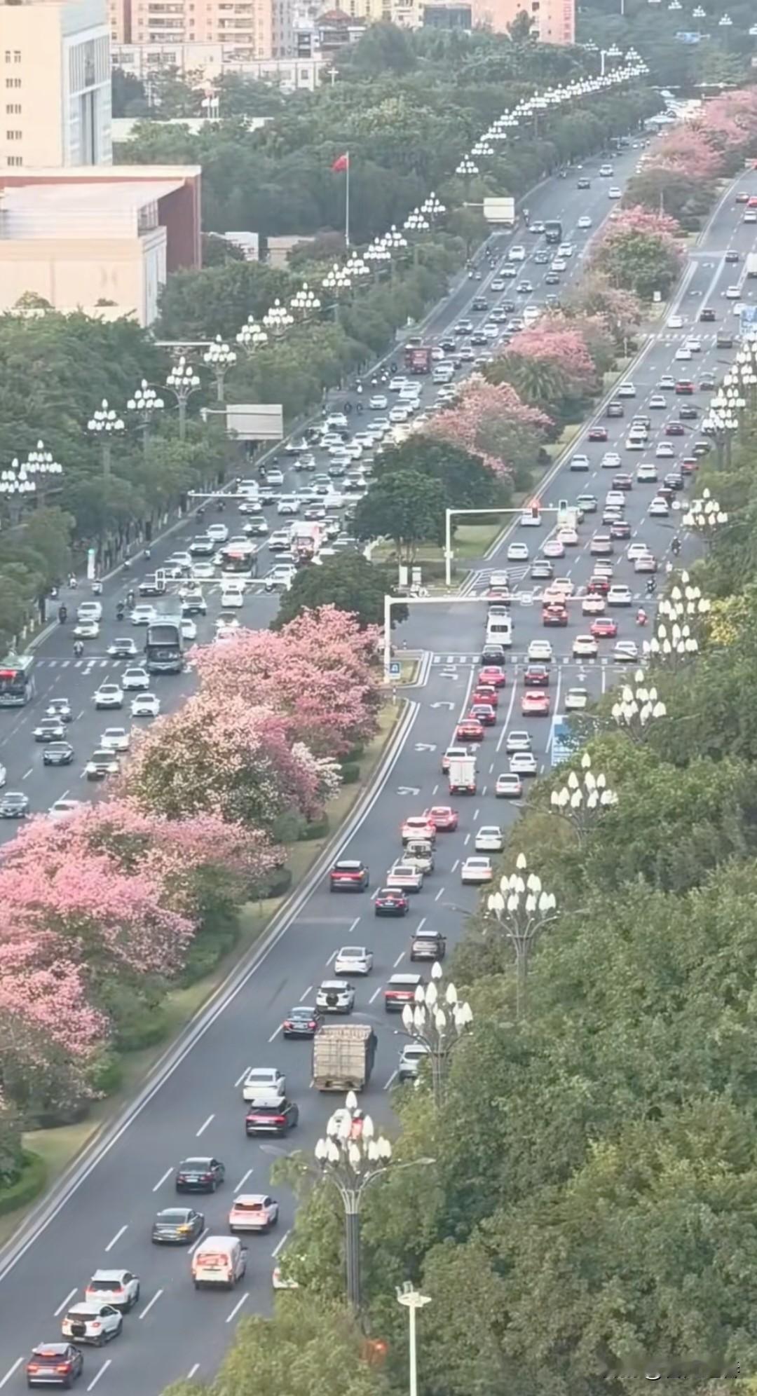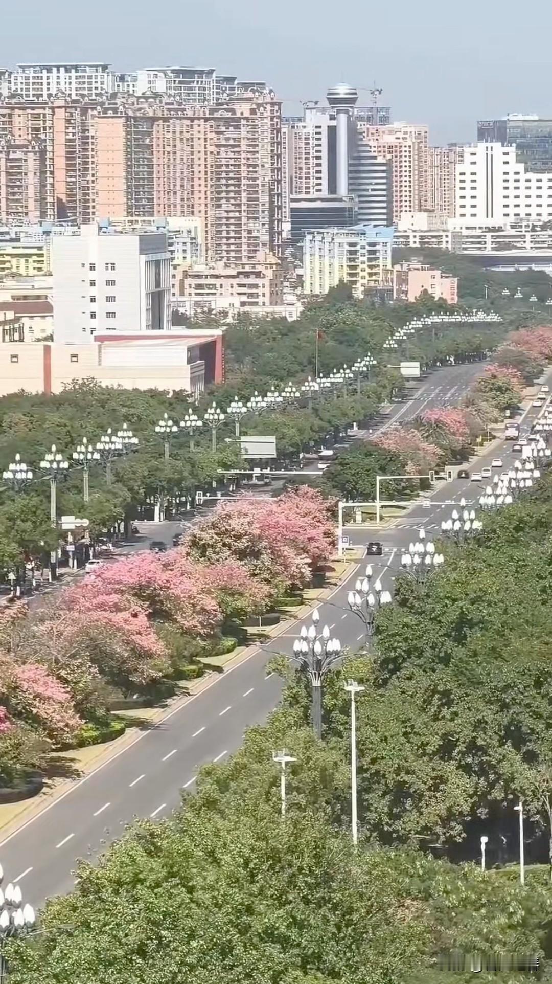 晋江世纪大道 冬日里的世纪大道,依然绿意盎然,一路繁花,异木棉灿烂绽放。 夜幕降临,华灯初上,街道上车水马龙。 霓虹灯盏隐悠悠,轻风浮影映宇楼。 马路两侧玉兰花路灯,宛如两条蜿蜒飞舞的火龙! 见证繁华盛世!
