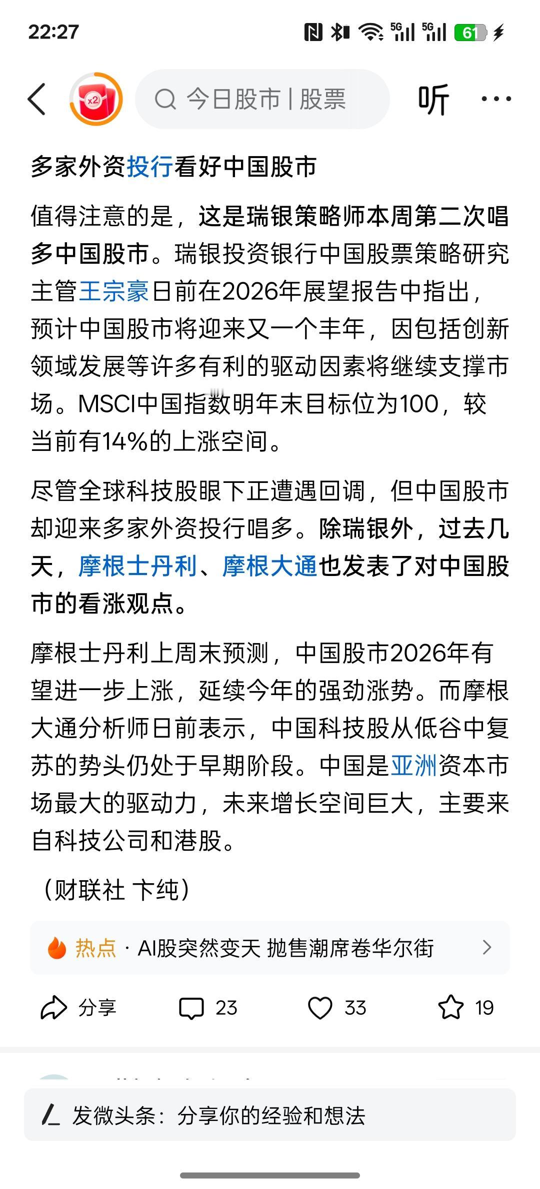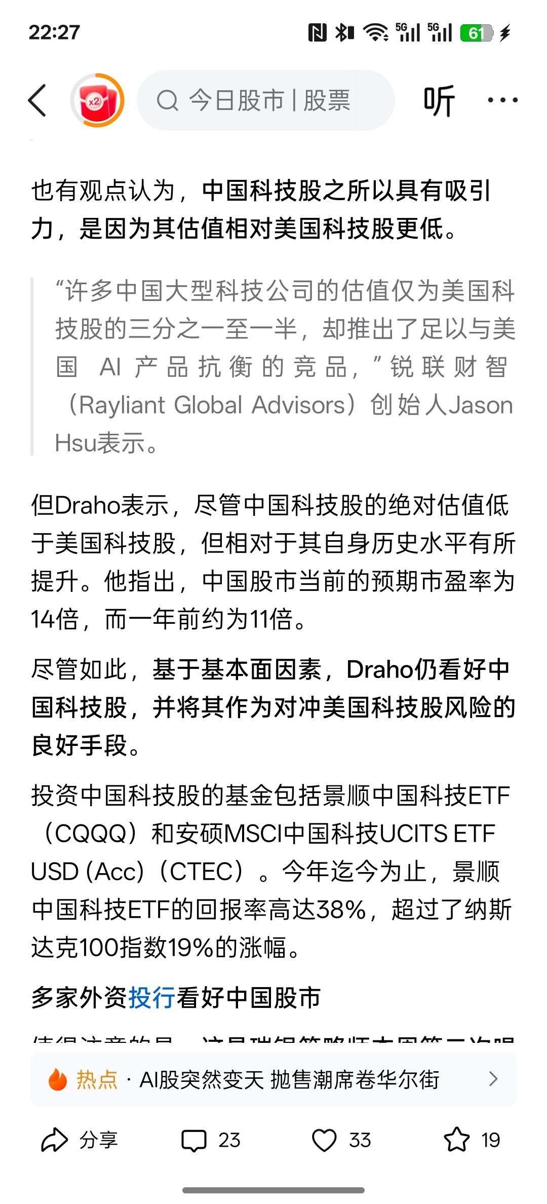 美国科技股抛售潮持续!瑞银高呼:是时候将目光投向中国了,最近外资却一直在看到中国资本市场,而且看到中国股市上涨的空间,明年更加看好中国资产上涨!现在外资更多的是看好中国的科技未来发展,主要是中国的AI人工智能的发展趋势以及创新力度,包括芯片半导体的技术突破,以实现国产替代都让外资坚定看好中国科技未来的发展,甚至把中国的科技堪比美国科技风险的对冲持仓!美国的股市在历史高位,科技公司的股价都涨的太高了,而中国现在的上市公司这些科技创新企业股价依然在相对比较低的位置,拥有更多的价值投资与成长空间! 从外资基本面来分析,中国的科技上市公司的股价完全可以对冲美国科技股的风险,外资也在加大力度购买中国资产!大量的投资中国的科技上市类公司!中国科技公司的股价从低估值开始在修复,而且目前还处于早期阶段