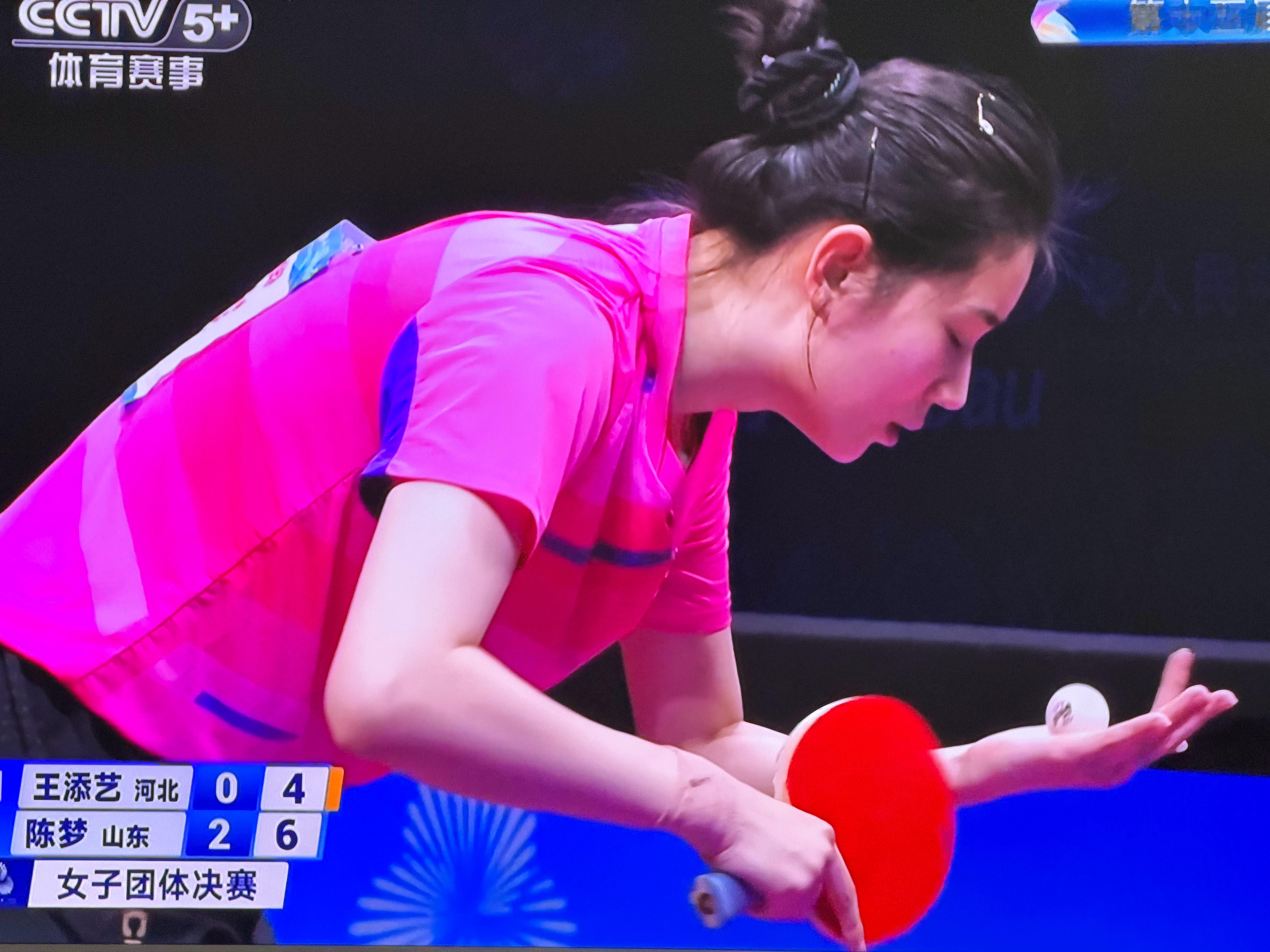 这应该是当下中国乒乓球队的队花了。可惜技术不是顶流,帮不上孙颖莎忙——-被陈梦打得无招架之功。