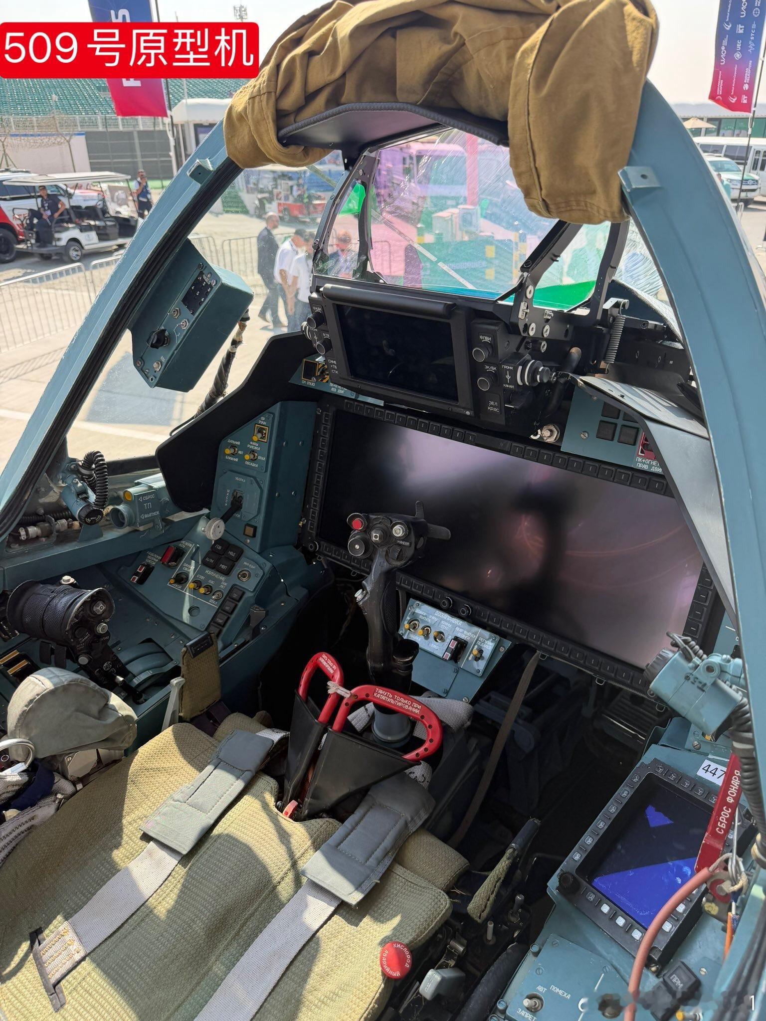 苏57观察:迪拜航展509号原型机的一些局部变化➡️显示器变化:从早期移植苏35航电试飞(图1)、到057号地面联调测试机(用于苏57M第二阶段设备集成测试、例如目前唯一双发安装产品30无矢量LOAN喷管的是057号),双屏变成三折屏,再到509号原型机改为单大屏(平面)➡️HUD变化:三个苏57原型机的衍射HUD支架均有不同,遮光罩也有区别、可见苏霍伊调试了不同HUD,最终采用了类似最新型米格35的HUD(图6)。➡️三个图的苏57原型机都采用长中杆设计,但是按钮位置不同,可能是不同亚型。长中杆设计行程较大、系统重量大、杆前不能在裆部塞小屏幕,落后于图5 tomcat21后舱的微型中杆,更好的方案是侧杆有利于卧杆操作扛过载G值。对比图5雄猫21后舱和苏57座舱中杆长度,苏57中杆长度明显过长并遮挡主屏幕。图7雄猫21前舱设计与图8的J20座舱设计类似均为侧杆➕上中下三屏、裆部空间充分利用。图9为F35座舱侧杆布局、图10~图12分别为FC31、J35A、J35座舱布局,前两者均采用侧杆单大屏VS后者因舰载着陆原因改了中杆、屏幕可能类似J10C一平三下或四下。图13是苏霍伊研制的苏47采用侧杆➕一平四下布局、图14是洛马研制的F22A也采用侧杆➕一平四下布局,在操纵杆减重等方面小胜苏57操纵杆。➡️图15和图16对比可见更晚的509号原型机把054号原型机的LEVCON设计的收纳LEVCON的V型凹槽改为了平面、这意味着LEVCON的翼尖难以被遮蔽、尖点散射增大,不过苏57也不追求-30db以内的隐形、所以509号原型机简化设计降低成本(例如三折屏改回单平面屏、LEVCON收纳槽改平)。 ➡️辅助进气道隐形优化:图17是早期苏57原型机大大咧咧的百叶窗辅助进气道和矩形放气门VS图18高清大图可见苏霍伊在509号原型机增加了金属屏蔽网类似F117A处理直通进气道的RCS优化操作,进气道侧面的放气门扭成菱形增加金属屏蔽网,类似设计也出现在J20的全动V尾环控辅助进气道上也用了特殊设计的金属屏蔽网(18张图限制不展开了)。