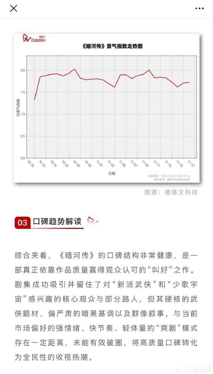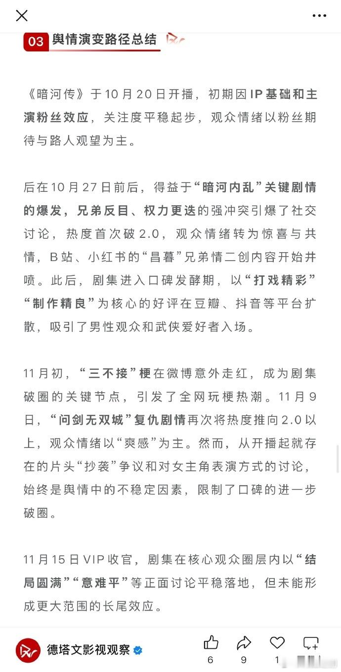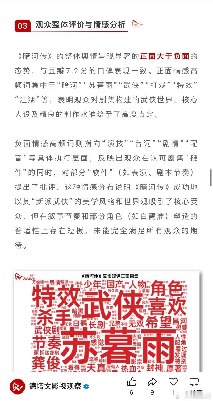 德塔文发文,《暗河传》复盘:硬核新派武侠的得与失 。龚俊实绩再增口碑爆款