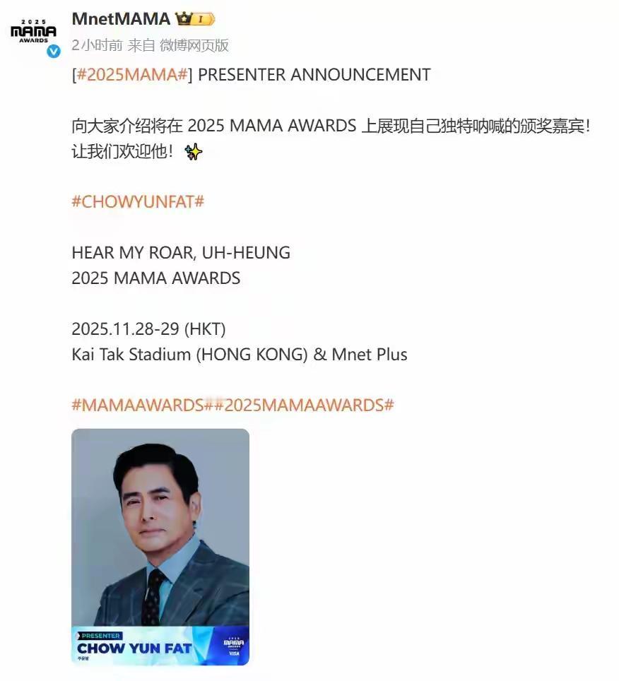 已确认!是周润发! 官宣出席MAMA颁奖典礼 周润发作为一名老演员,深受海内外观众的喜欢,在韩的影响力也不容小觑,这次居然还官宣了将担任2025在香港举办的MAMA颁奖典礼的颁奖嘉宾 周润发看着年轻时候的作品,估计这次出席颁奖嘉宾也能获得不少的报酬 对于周润发以前出演影片塑造的角色自己曾经说死后遗产不捐等的想法,周润发这个人在不少人的心中还是争议的