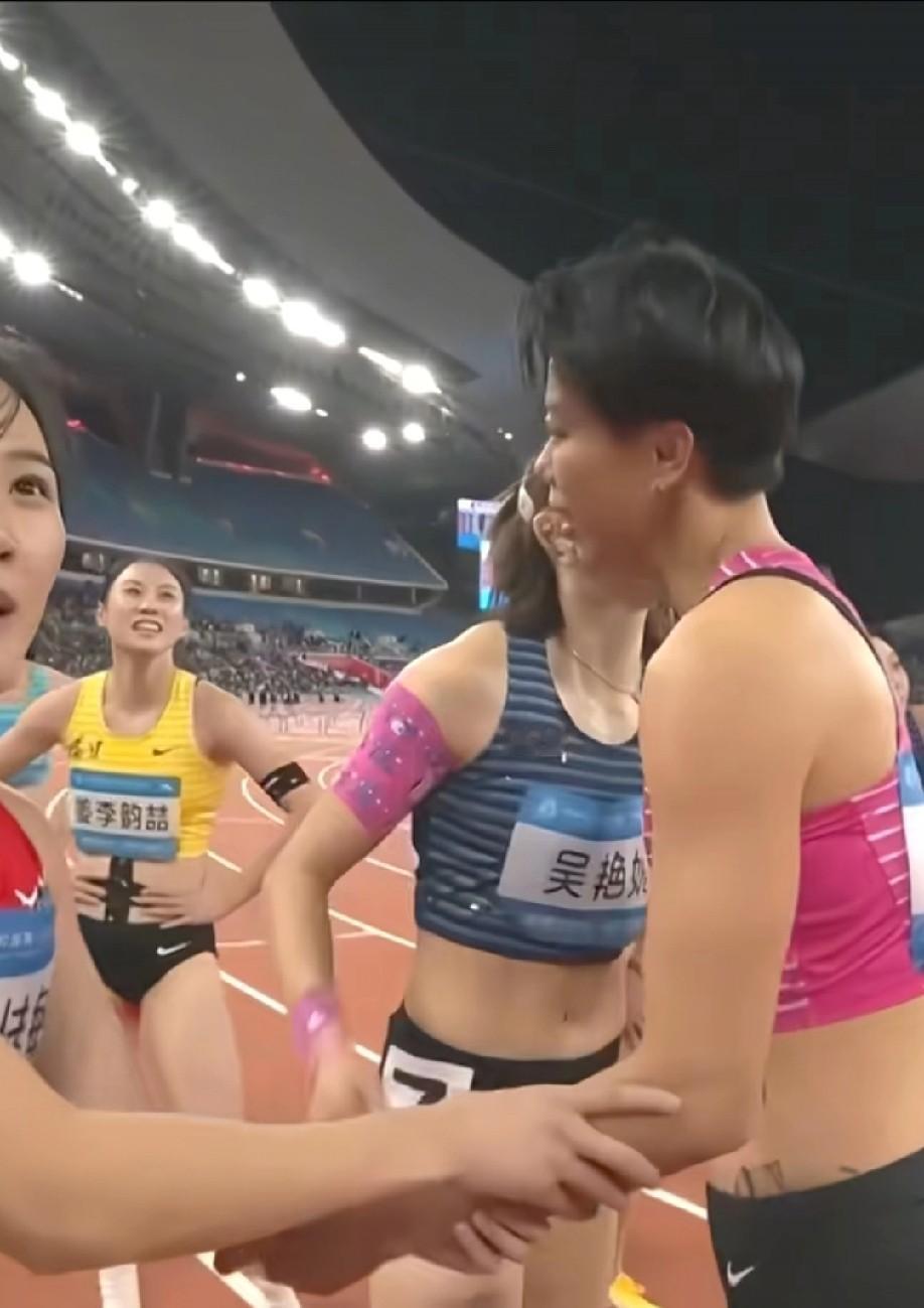 刘景扬不是黑马!吴燕妮就这水平!战胜吴艳妮的刘景扬说练田径已20年吴艳妮领银牌后仰面哭泣 此次全运会,女子100米栏的决赛,激动人心,最终刘景扬12秒81,夺冠,而赛前被看好冠军的吴燕妮12秒85第二名,福建妹子林雨薇12秒95得到第三名。 乍一看,很多人说,刘景扬是黑马,冠军本来是吴燕妮的。但是实际上,我们来看成绩,吴燕妮12秒85,这个成绩非常代表吴燕妮的实力,简单来说,这就是她的水平。 而林雨薇,成绩12秒95应该说也算是她的真实水平,或者发挥的比较好,毕竟之前都是13秒后。 而只能说,刘景扬太强了,还记得上一次田径大赛,刘景扬一马当先,不过后面摔倒了那次吗?吴燕妮赛后也接受采访表示,如果刘景扬没跌倒,冠军就是刘景扬的。 所以,刘景扬是真强。吴燕妮这次崩了,泪洒领奖台。再看看林雨薇,开心。看起来和刘景扬关系也不错,最后大合照都搂在一起。