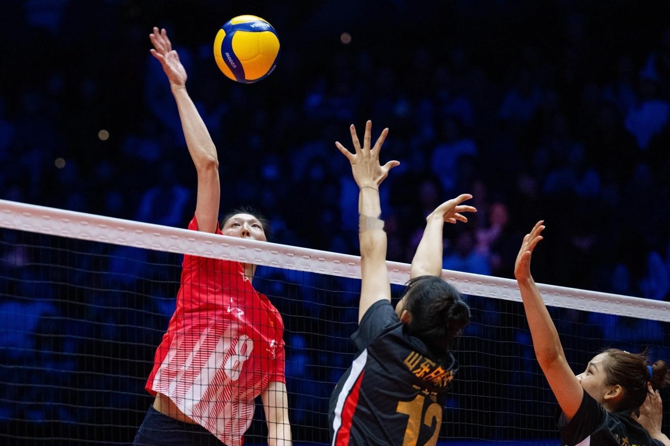【图集】2025年第十五届全运会女排成年组冠亚军决赛:江苏女排3-0山东女排(新华社记者 张金加摄 11月19日)