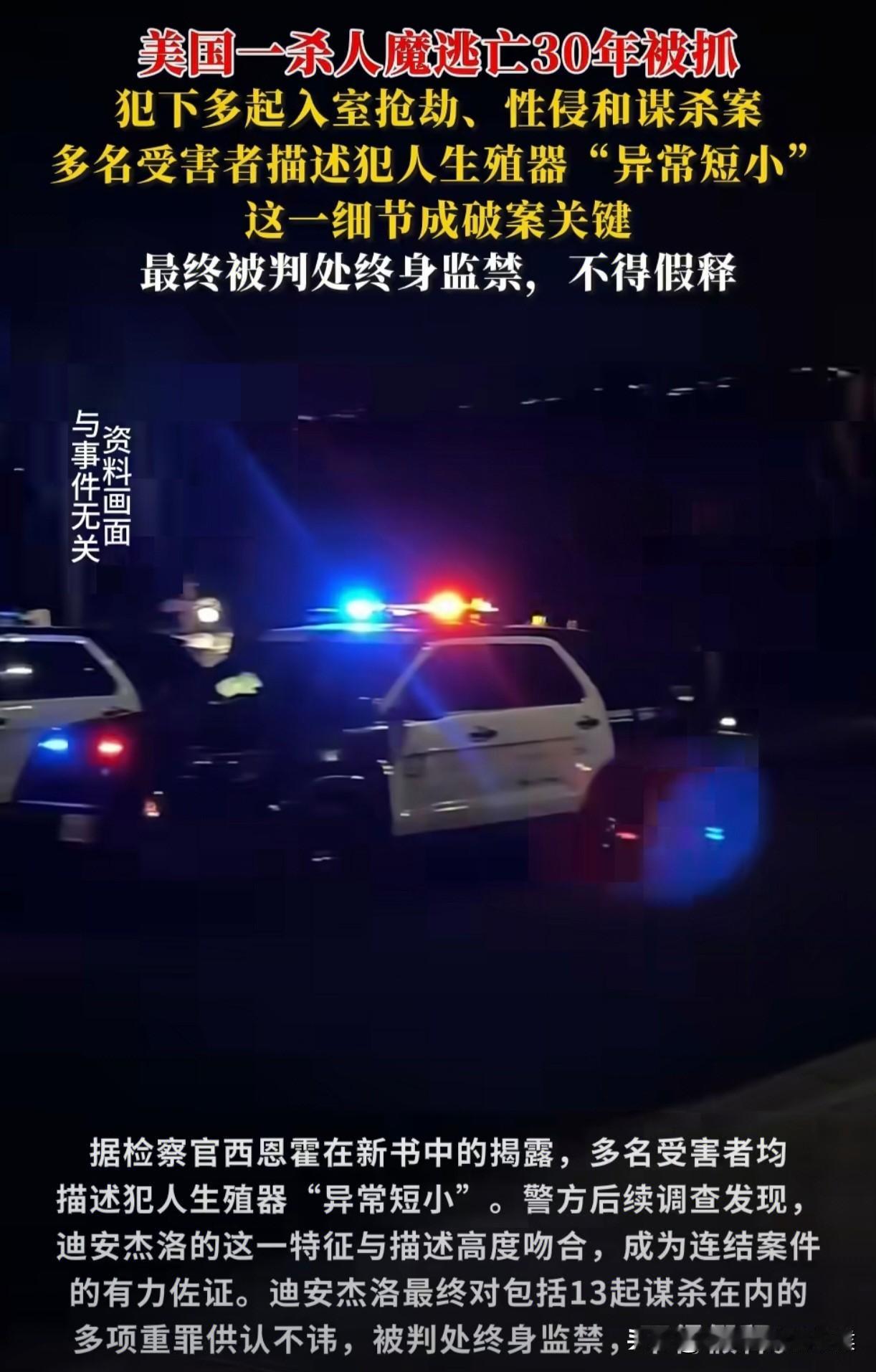真是世界之大,无奇不有呀[笑哭]。 在美国,一个逍遥法外三十几年的连环杀手,最后让警方把多起案件串联起来的,除了DNA之外,竟然是他身上一个极其罕见的特征。多名受害者都提及了这一点,这成了破案关键。 真是天网恢恢,疏而不漏。再狡猾的罪犯,也总会留下蛛丝马迹。