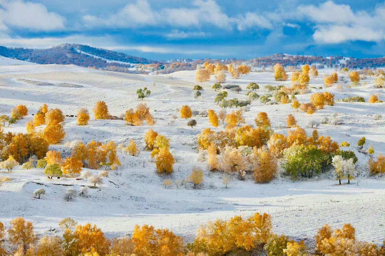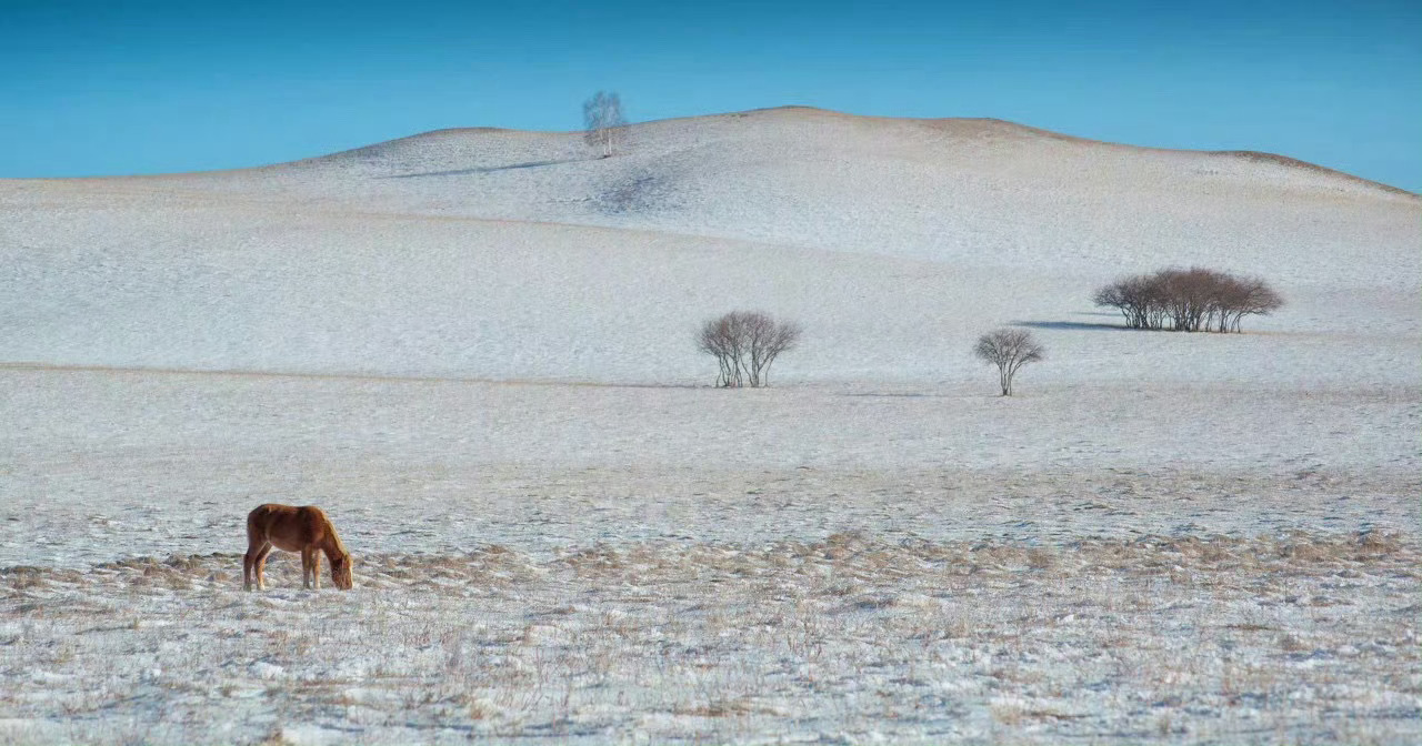 冬季的坝上,像是披上了洁白无瑕的婚纱,神圣纯净,美得让人一见倾心。