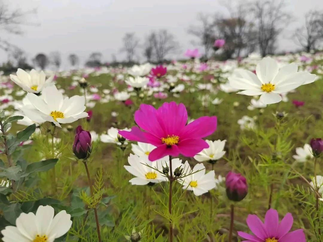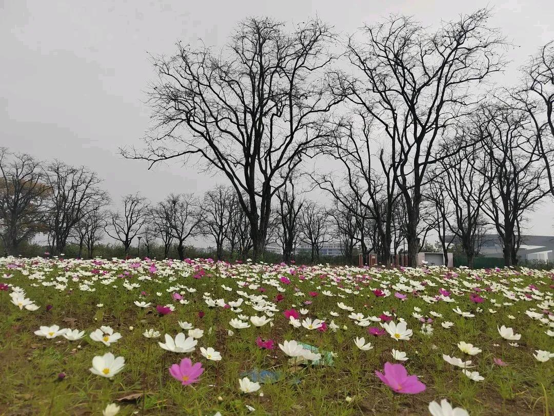 南阳〖花镜公园〗的格桑花开了,你们去看了吗? 今天从光武桥走 路过〖花镜公园〗 就下车去顺便逛了逛 想不到已经初冬的时节 我屋里种的花都陆续开败了 这里的格桑花却开的正艳 从远处望去白一朵紫一朵的 整体看起来特别像绿色的毛毯上绣着的一只只蝴蝶 特别浪漫 再加上远处错落稀巯的树木 别有一番滋味 走近了看 花朵不大 叶片单薄的在风中微微摇曳 但一整片连起来就显得特别有诗意 莫名的让人心花荡漾 远处还有一种长串的紫色花茎 不知是不是“一串红”? 今天的阳光正好 太阳晒在头顶暖洋洋的 却不会像夏日般滚烫 闻着花香来一场日光浴也很不错 你说呢?