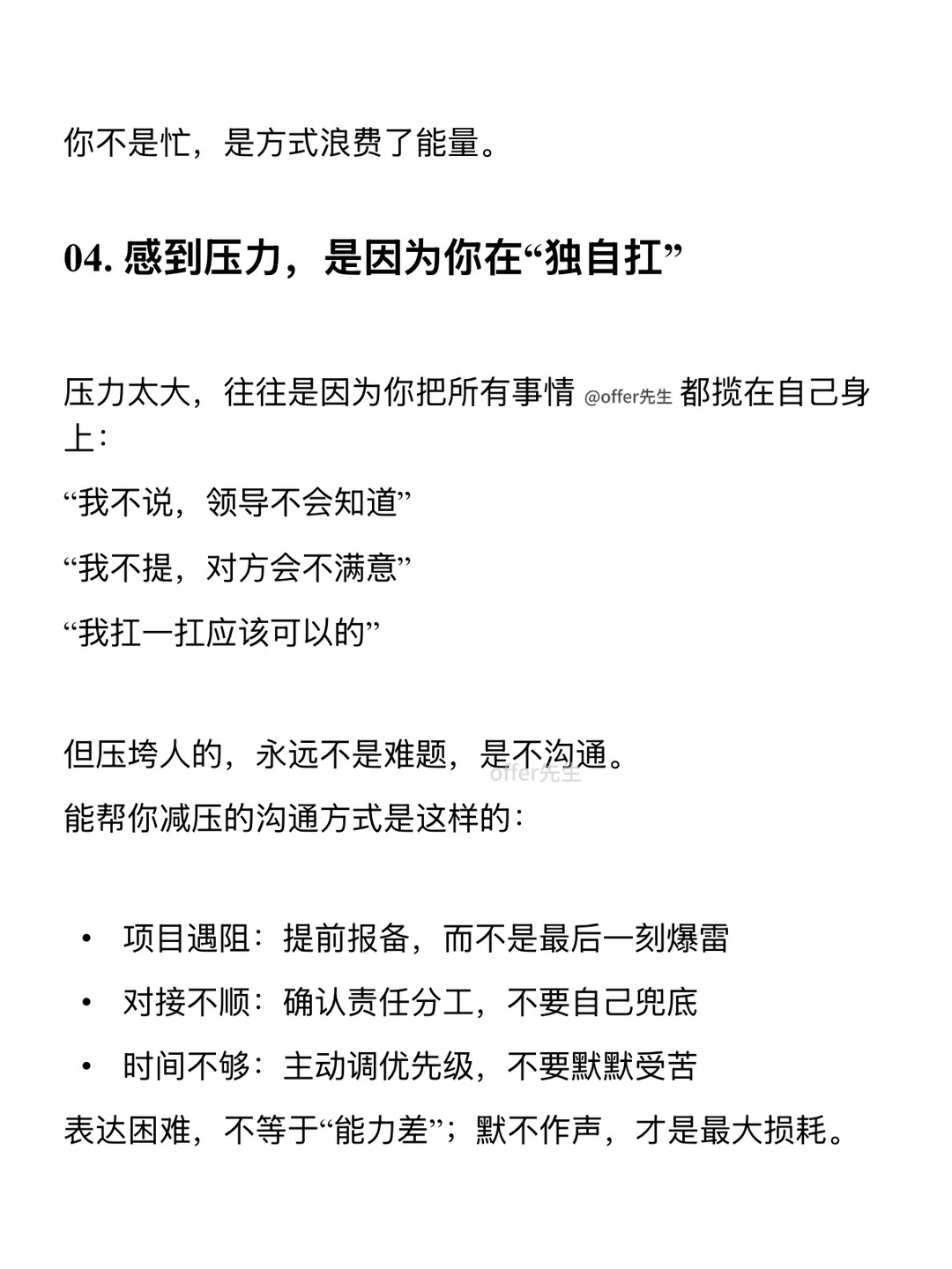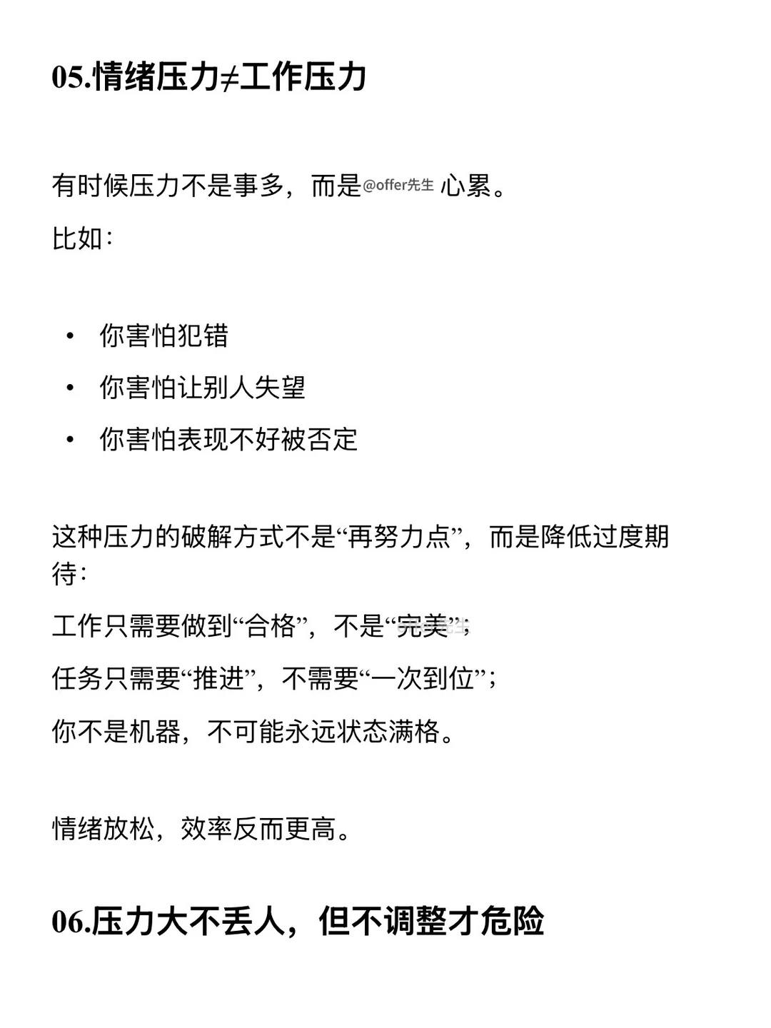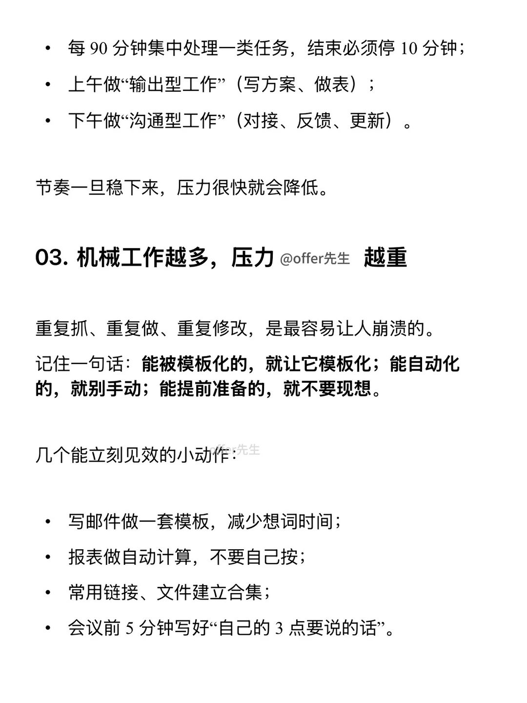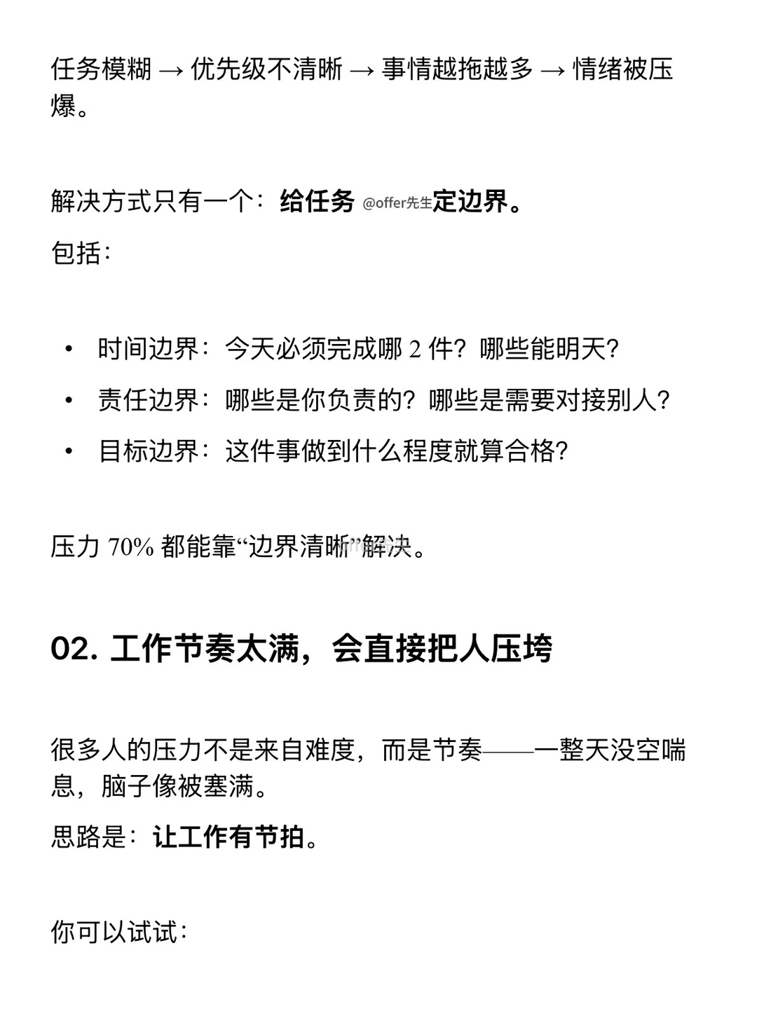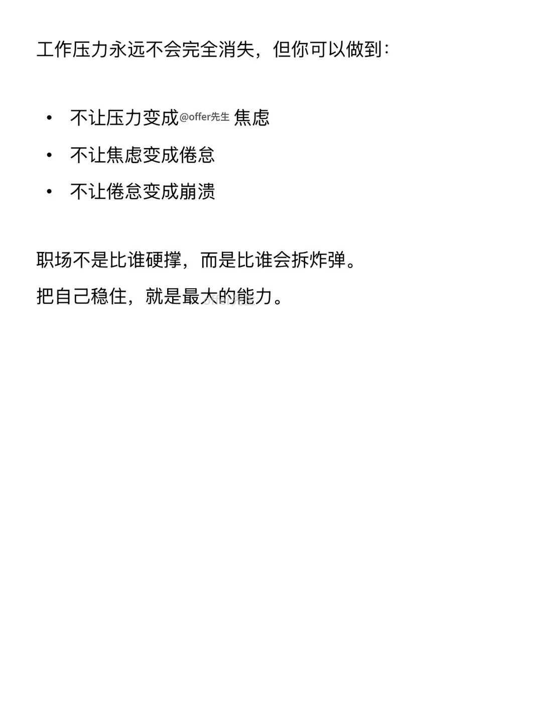 工作压力大,本质不是“事情太多”,而是没有找到让自己能稳住节奏的方式。越是忙、越是乱的时候,越容易陷入失控、内耗、焦虑循环里。 压力不会自己消失,但你可以学会“让它变轻”。 · 下面是几条真正能救急,也能长期有效的减压式工作法… · 一个认真分享“找工作”干货的账号,真诚、有料、不说空话