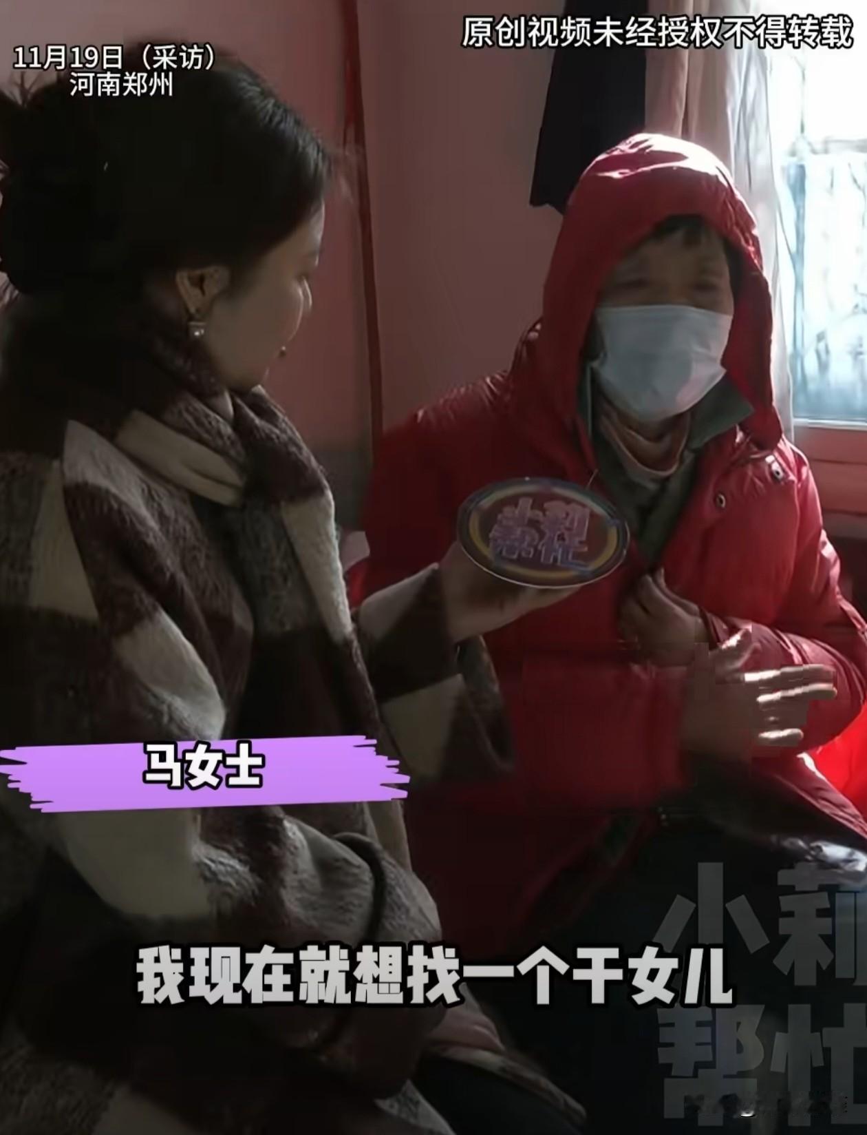 河南,一75岁老人想认个干女儿,她说只要对方真心给自己养老送终,就赠送一套房,每月给3000元生活费,还有其他大概40万财产。 老人早年就离婚了,跟亲戚们也断了来往。她有两个女儿,大女儿跟她彻底闹掰,明确说不管她的养老,也不图她的财产,二女儿有精神残疾,自己都需要人照顾。 她有自己的住处,也享受低保,吃穿不愁,但年纪大了,身边没人陪伴,心里很孤单,所以想找个靠谱的人,用财产换晚年安稳。 她计划把自己现在住的房子留给二女儿,另一套闲置的房子和40万左右的财产,用来兑现给干女儿的承诺,两个女儿她都不想亏待。 目前,她还没找到合适的干女儿,毕竟这种事双方都得谨慎,怕遇人不淑。 老人有房有钱却没人陪,晚年连个端茶倒水的人都没有,很心酸,也让人心疼。 老人太孤单,用财产换陪伴也是没有办法的办法,是无奈之举,可以理解。 希望她早日找到一心一意对自己好的干女儿,有人陪伴和照顾,安度晚年。
