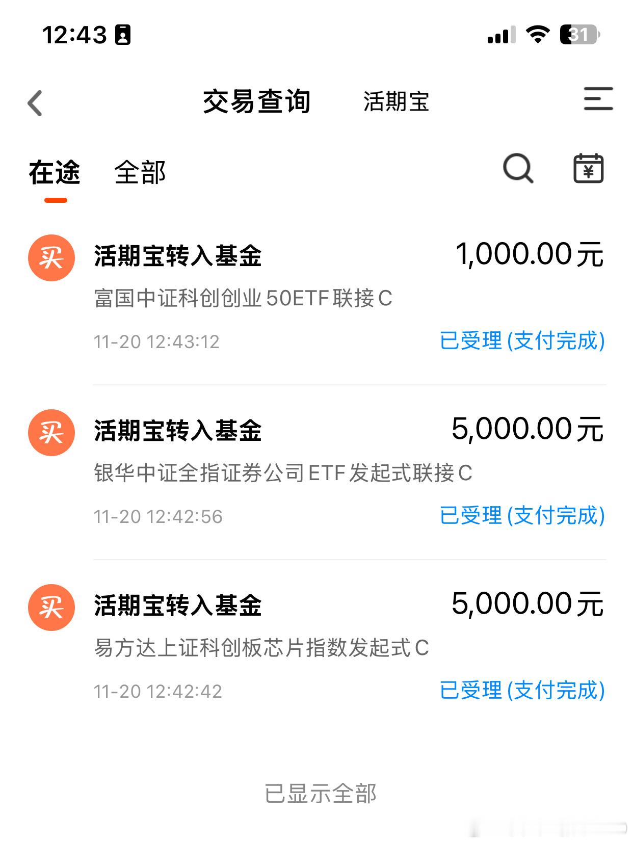 午评:英伟达财报炸裂,为何科技还是跌?昨晚决定全球市场走向的英伟达的Q3财报出来了,依旧非常出色,超出市场预期,英伟达盘后大涨5%,今天A股的一众小弟开盘也是红彤彤的,但后续逐步往下走,下午港A股均翻绿。这是什么原因?其实今天还有一个利好,就是中金合并两大券商,今天开始停牌,但市场还是不买账。我分析下跌原因,一是估值需要时间消化。现在市场是机构资金主导,还是会看基本面炒股的,且散户并不大容易加杠杆,机构到11月KPI考核期,以稳为主,留点空间给明年,同时以时间换空间,消化估值。二是Q3财报有1/3的AI公司业绩低于预期,不砸盘就算不错了。三是海外市场扰动,都在等待美联储降息结果。今年大盘能够稳住4000点就可以了,大家放低预期,评估一下自己的持仓,做好仓位管理和配置优化,明年再战。今日逢低加仓5000元易方达科创芯片(020671),芯片我的买入过程走了个倒V,一开始是右侧追涨,现在是左侧越跌越买补仓逻辑了,高位调整了近20%,目前看有横盘企稳态势,一般来说,对于芯片这种高波动资产,中等级别的调整幅度在30%左右,所以这个位置向下空间有限,何时向上需要等待市场整体回暖。这个位置以分批低吸为主,控制节奏,不要割肉,满仓了就躺平。易方达科创芯片整体表现优于同类芯片基金,大厂出品,质量有保障。今日加仓5000元银华证券(025194),昨晚出了大消息,中金公司要合并信达证券和东兴证券,证券也属于反内卷的概念,现在同质化确实非常严重,浪费了大量的人力物力,券商行业重组,可以大大提升行业效率和服务质量,随着慢牛的演进,证券行业的估值和基本面都有望上一个台阶。今天开盘大涨5个点就说明了市场情绪,无奈被拉下水了,选择银华证券基,主要是费率是全市场最低一档,同时业绩表现也不错。分批加仓,坚定持有,等风来。今日加仓1000元富国中证科创创业指数(013314),今天创业板和科创板还是整体回调,昨晚英伟达的炸裂财报,也只让两大科技指数红了一个小时,只能说砸盘的太多了,今年赚麻了的人太多了,整体策略还是以守住利润为主。以及现在市场对储能的争议比较大,但根据大摩的最新调研,储能明年的需求还是很强的,这有望带动创业板指数的权重股宁德时代和阳光电源继续上涨,科创板主要是芯片,只要牛市继续、国产替代继续,芯片我还是看好的,所以这个指数逢低加仓没毛病。