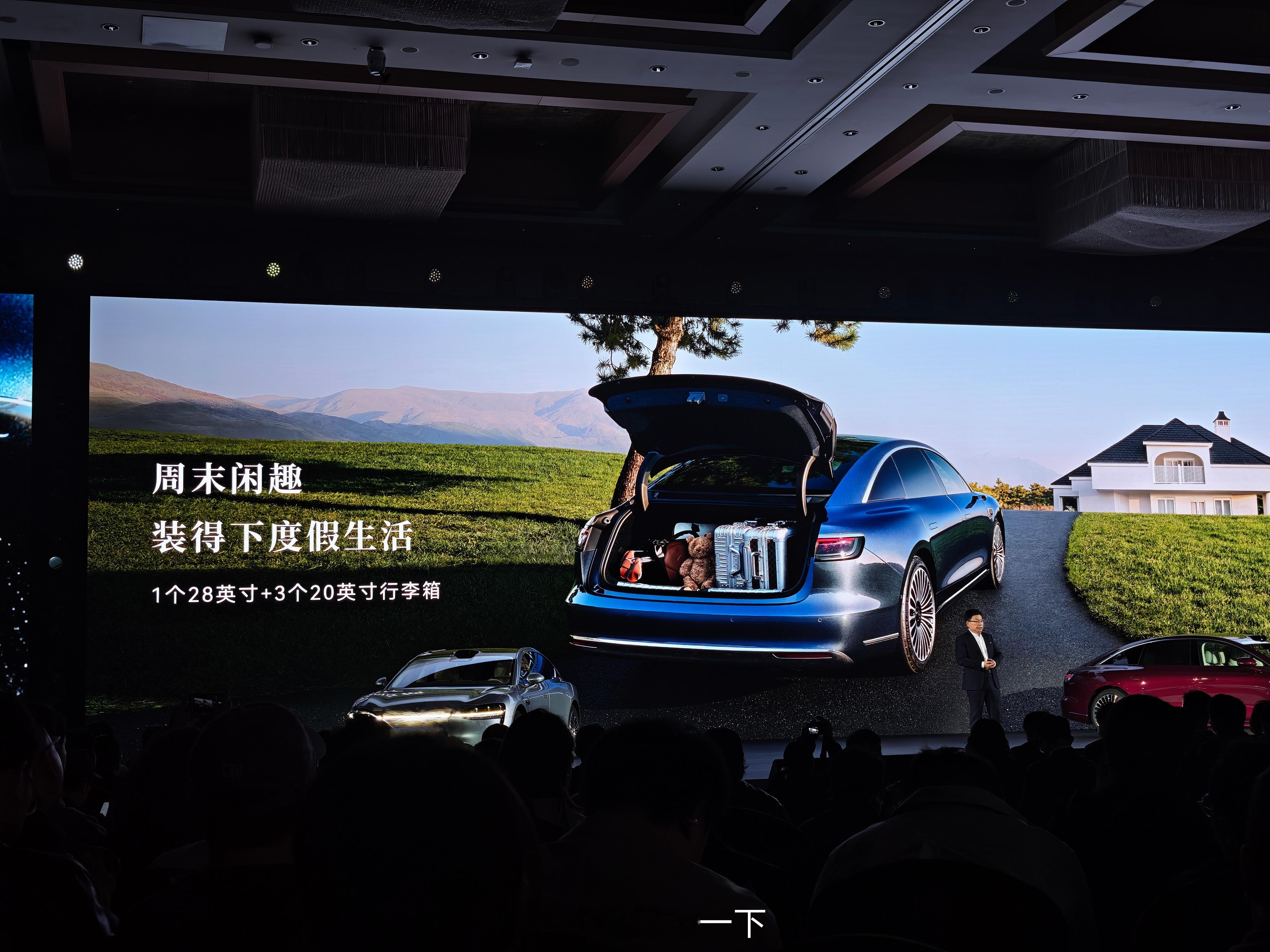 新款享界S9拥有38L的前备箱和48L的后备箱暗格,后备箱空间也放得下一个58寸的行李箱和三个20寸行李箱