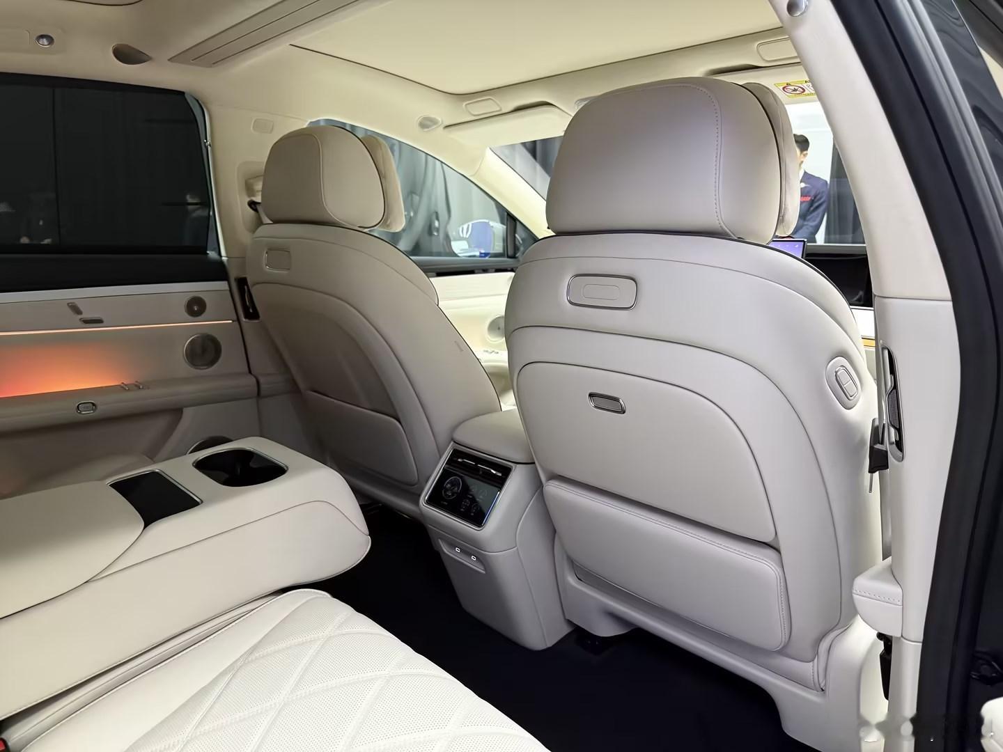 大面上看起来,新款享界S9跟之前似乎没啥区别,但仔细看,会发现细节上精致了不少,比如这个尾灯,跟尊界S800非常相似,都是星河点点的设计,非常养眼。也换上了新的“寰宇之星”logo,线条更优雅,辨识度更高;还有投影大灯、标配隔空手势开门、防碰撞感应,升级到了乾崑ADS 4智驾,拥有4个激光雷达。可以说,新款享界S9更像是一次换代,而且已经形成了S9与S9T双料阵容,三厢轿车、旅行车都有了,给人们的选择更多。