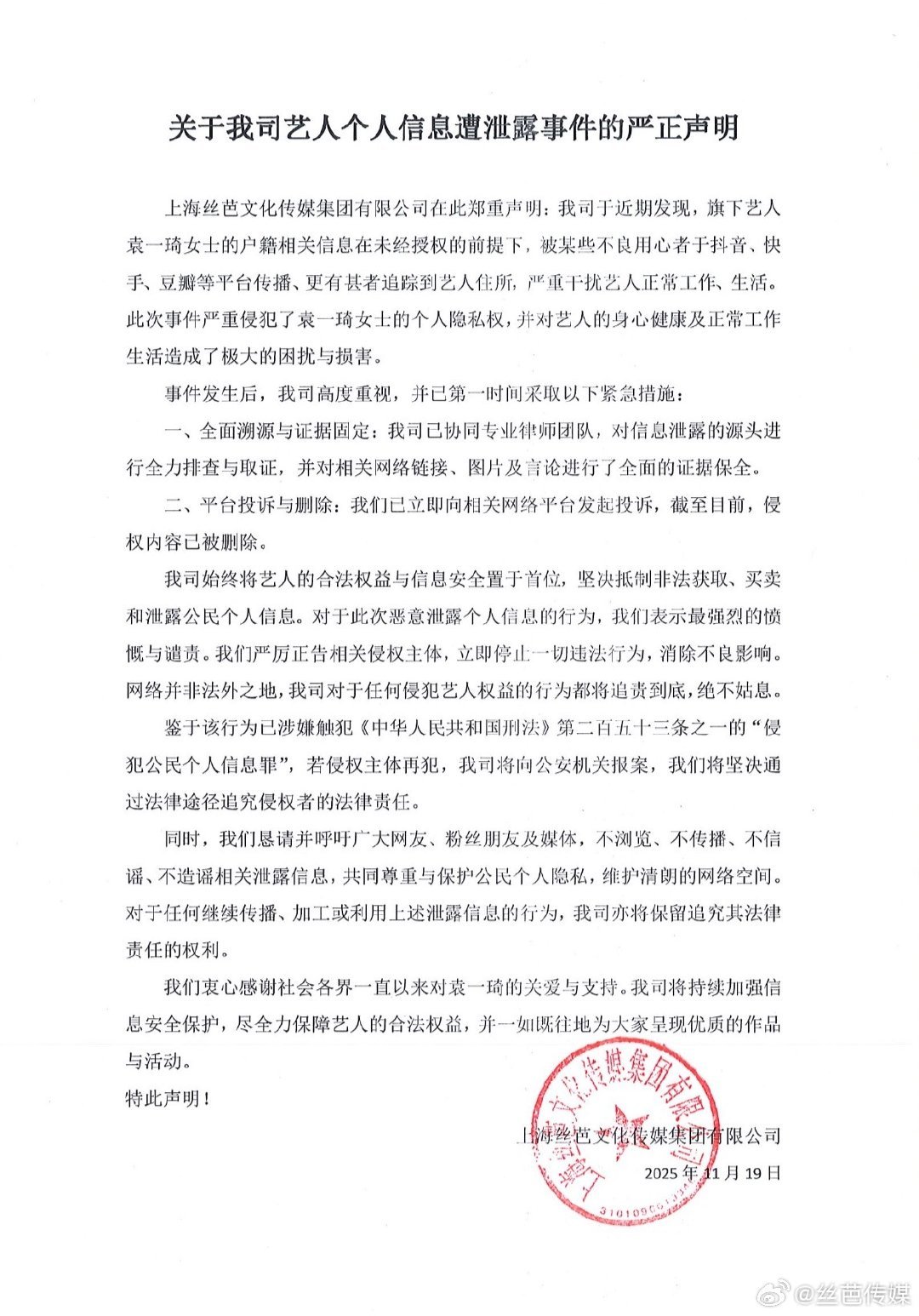 袁一琦工作室发布抵制私生的严正声明omg……在昨天发布声明后,还有人跟车到艺人住所、干扰艺人私人行程🙉