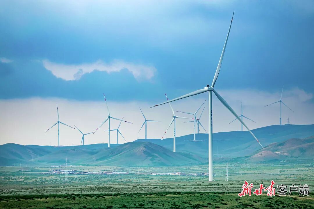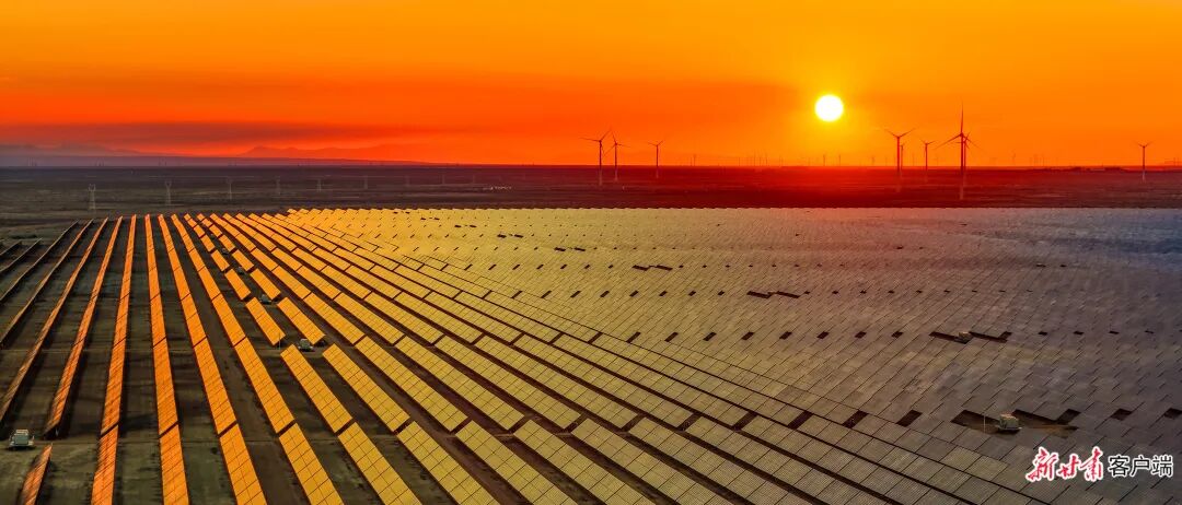 民勤县红砂岗,风机和光伏板构成大漠戈壁上的别样“风光”。