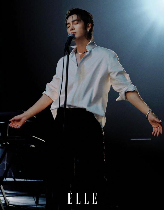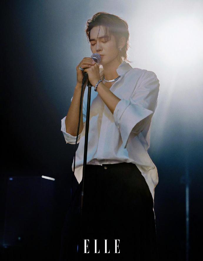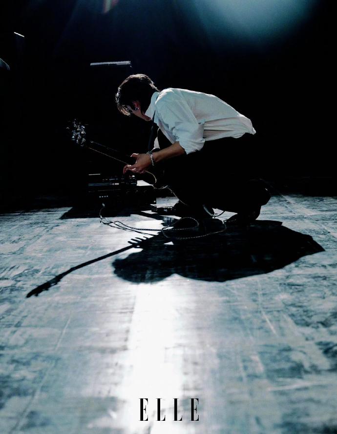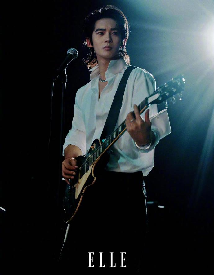 于适演唱会彩排造型,身着白衬衫黑裤子,抱着吉他。简单的穿搭盖不住舞台灯光下明媚的音乐少年。张力与魅力共存,给人以沉浸式的视觉盛宴,期待正式演出的精彩呈现