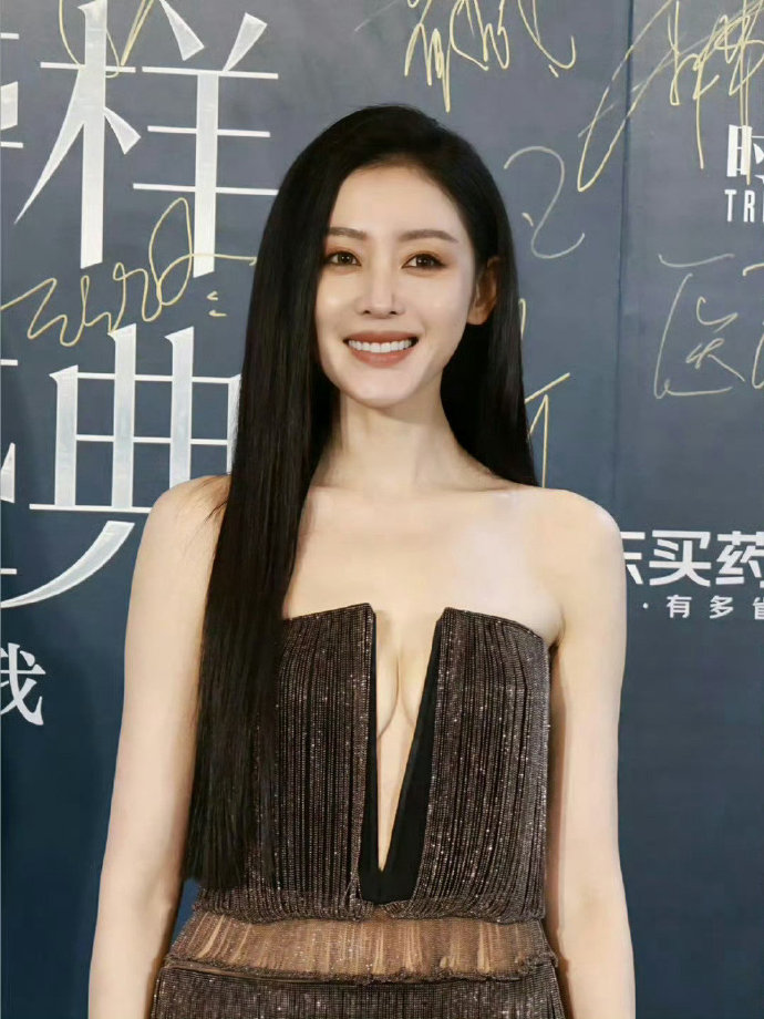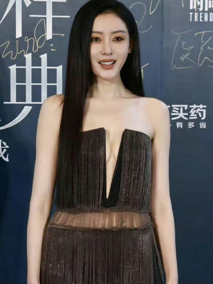 抹胸设计把她的肩颈线露得明明白白,深 V 更是把性感值拉满,还偏偏用流苏和闪片把 “俗” 字踢得远远的,高级感直接焊在上面。再配上她那绝绝子的曲线,这哪是穿搭,分明 “御姐” 的气场战衣啊!