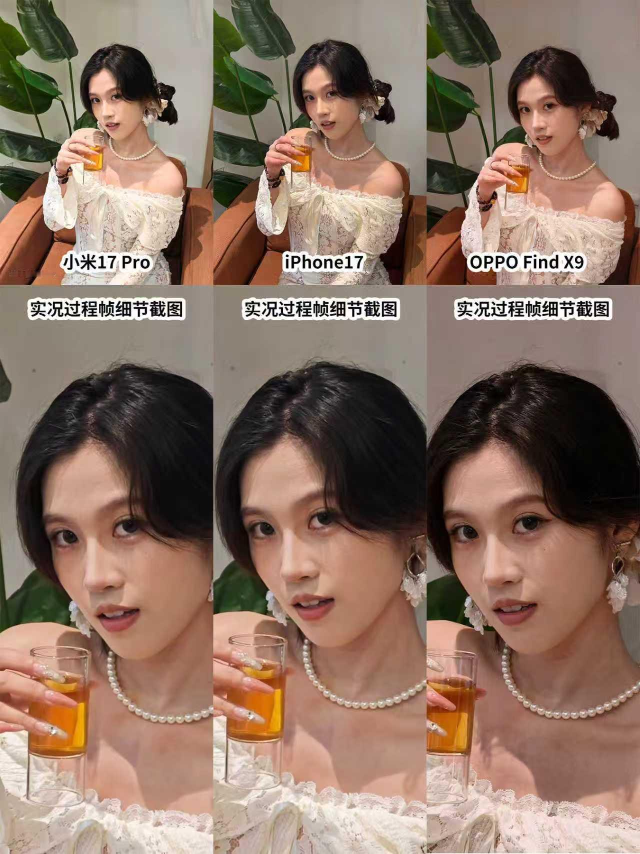 年底3大热门旗舰PK,live图你喜欢哪家? 年底想换新手机的我真的纠结疯了😭作为拍照控+live图重度用户,最后锁定这三款热门旗舰——iPhone 17 Pro、小米17 Pro、OPPO Find X9,都支持live人像,果断对比了一波~ ✅ 三款手机拍的live封面帧都很清晰,不过Find X9是4K live,细节保留更多 ,更关键的是,4K live能做到过程帧也和封面帧一样清晰,这是普通live实现不了的,观感优势明显。 至于美颜这块,三个手机区别还挺大👇 ▪️苹果这次终于有美颜了!珠光模式皮肤透亮高级,但色调还是偏真实,像我这种懒人还得后期调色,就有点劝退😅 ▪️小米17 Pro一眼惊艳!磨皮给得很足,自带网红感,原图直出就能发朋友圈,女生应该会喜欢~ ▪️OPPO Find X9是那种很自然的美颜,肤色细腻白皙,同时保留气血感,腮红发丝都很清透,一点都不假面,看着像天生好皮👍 💡有一说一,三款都是爆款机型,拍照都很能打 闭眼选其实都不会出错啦~ 不知道你们会选谁呢?求建议 live实况照片OPPO Find X9小米17 Pro