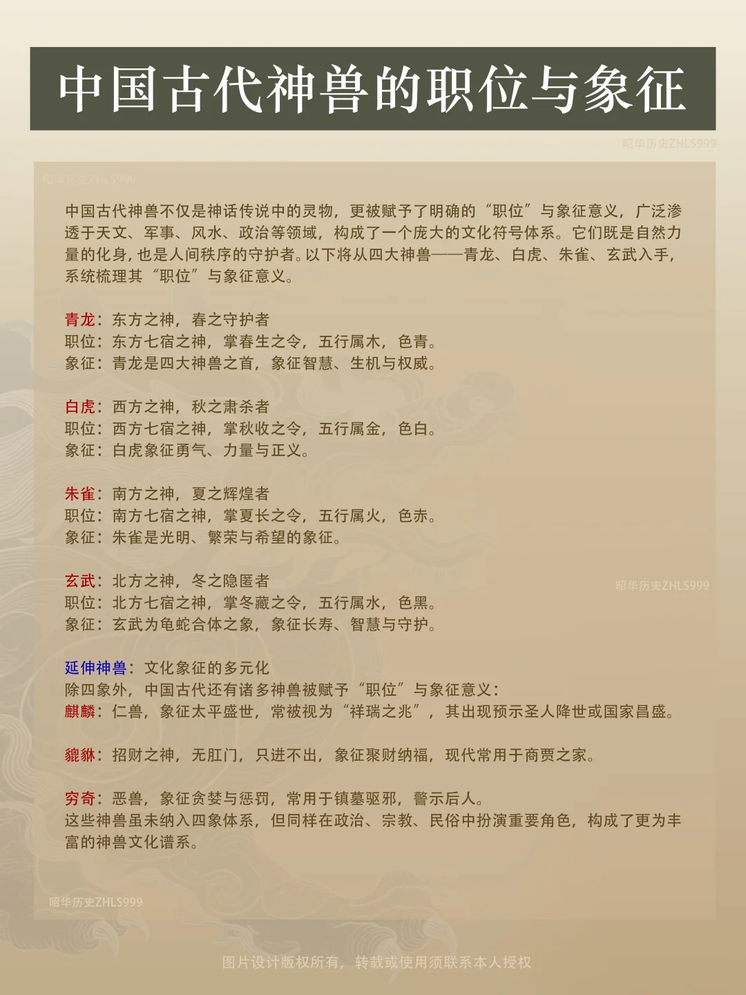 除四象外,中国古代还有诸多神兽被赋予“职位”与象征意义: