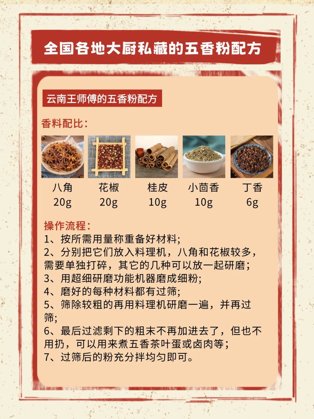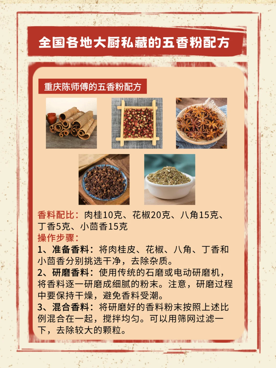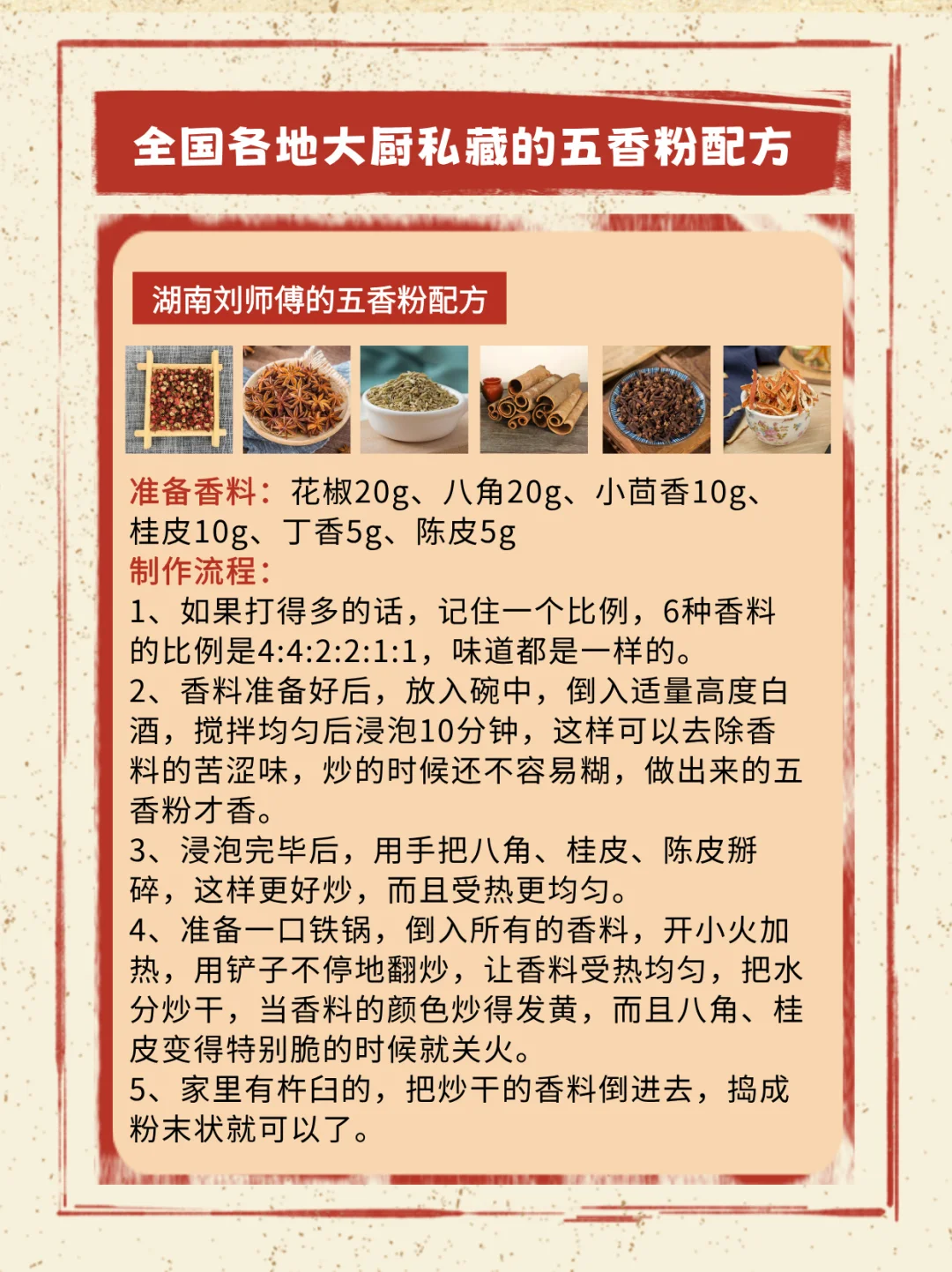 全国各地的大厨家传的五香粉配方!
