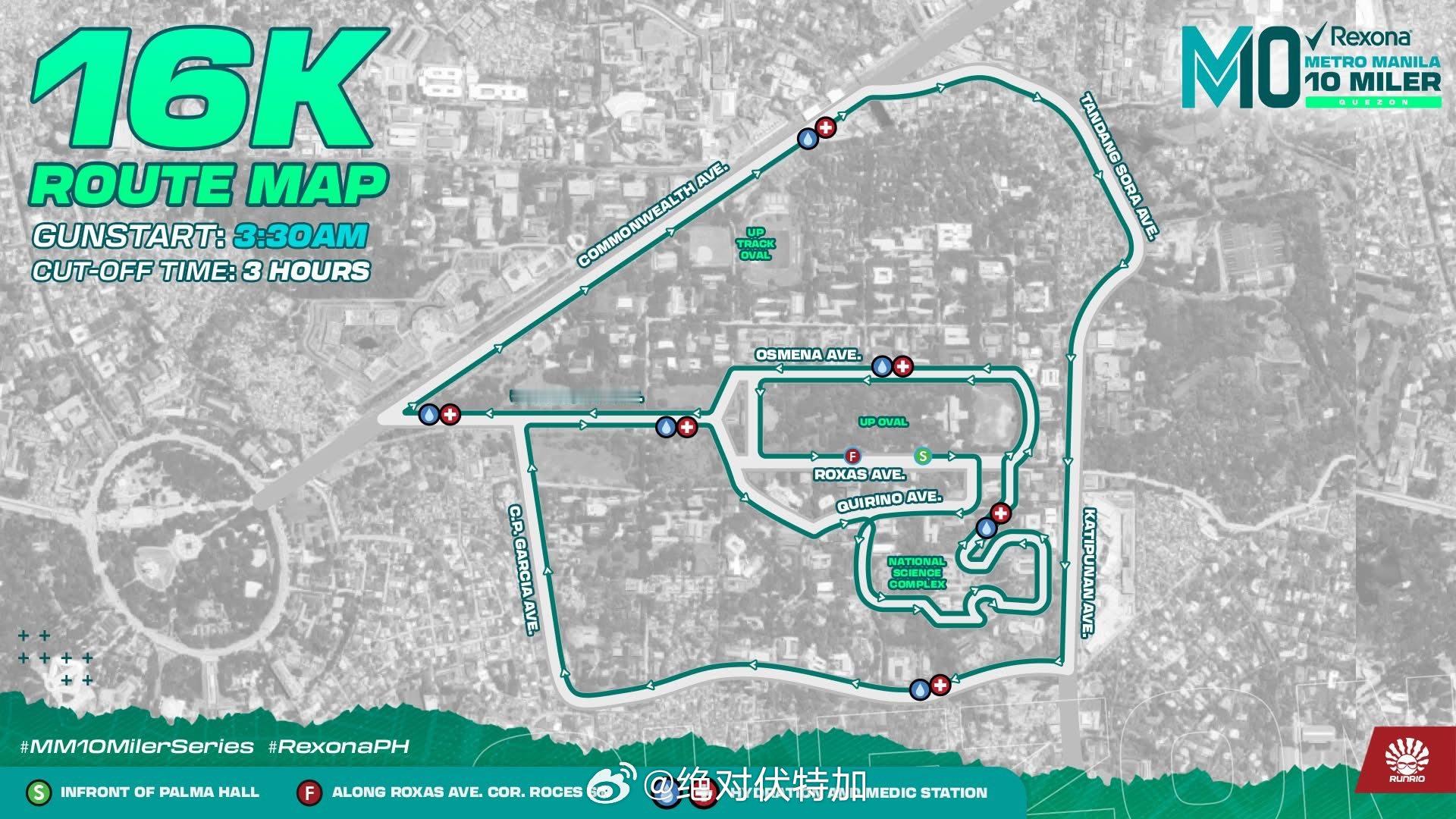 一个马尼拉跑步比赛的路线图。注意起跑时间和关门时间,真是在有限时间、空间硬玩出来的比赛。我猜路线中那个交叉是立交,要不然玩不下去的。