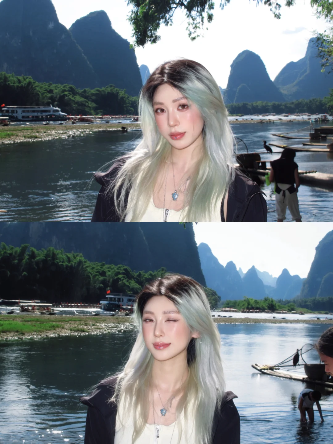 阳朔必打卡的千里江山和20元竹筏打卡地📷!! 就是真的太热了!!注意防晒⚠️