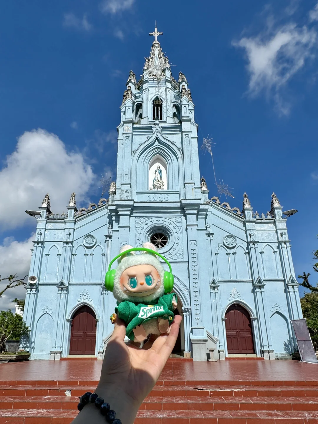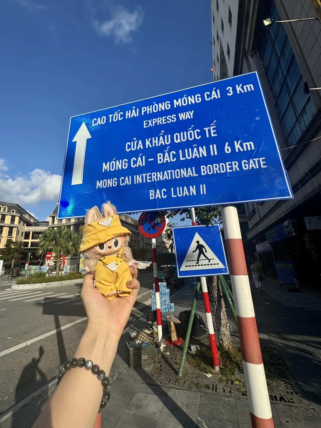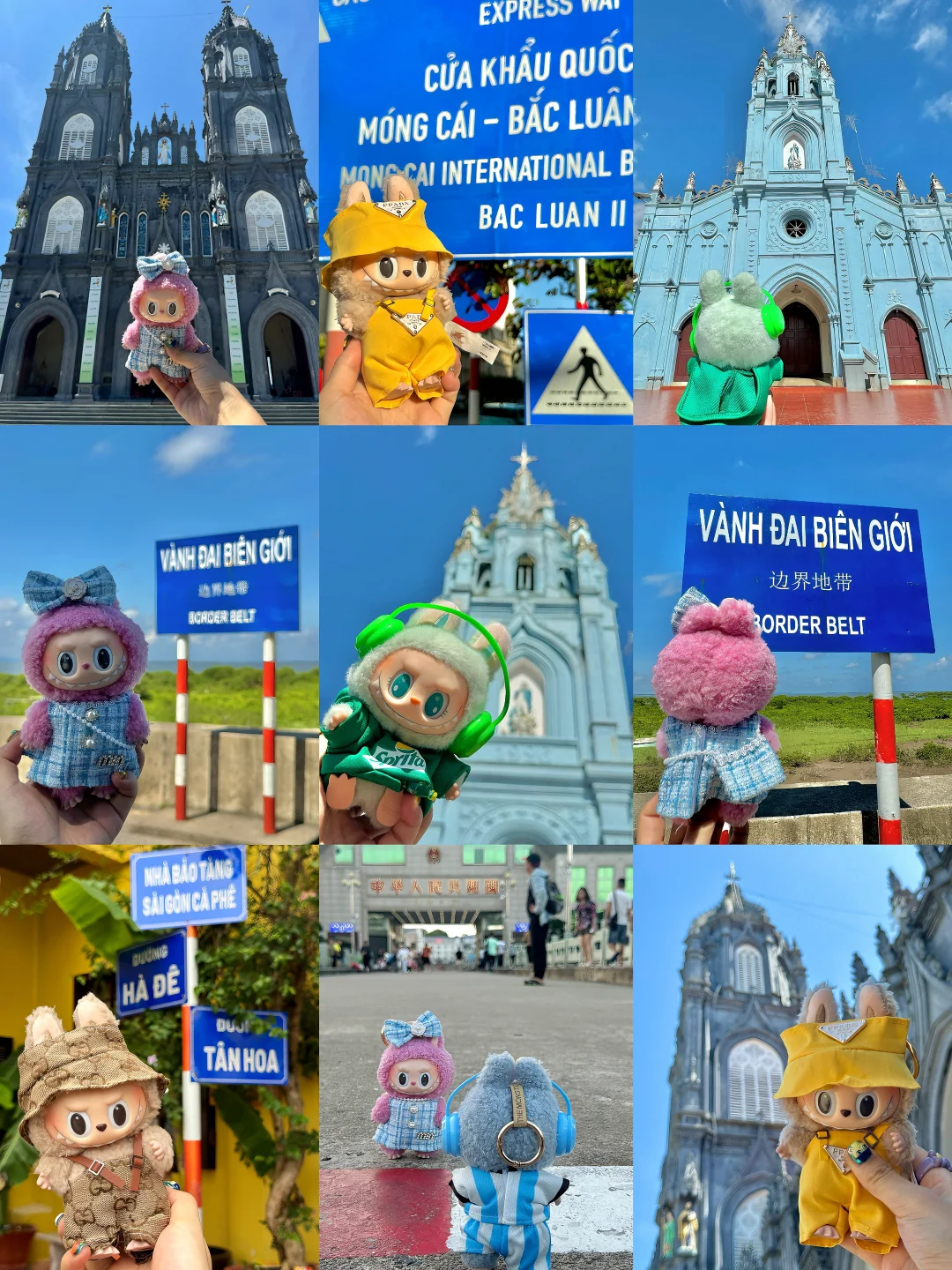 芒街朋友圈可以定位在越南!蓝色教堂那里也可以定位 Labubu带你看世界‼️ - 1⃣️茶古教堂⛪️ 2⃣️越南国门口 3⃣️0公里界碑 4⃣️蓝色教堂⛪️ 5⃣️中越边界线 6⃣️路边警示牌‼️ 出国旅游请带上你的娃这样拍‼️