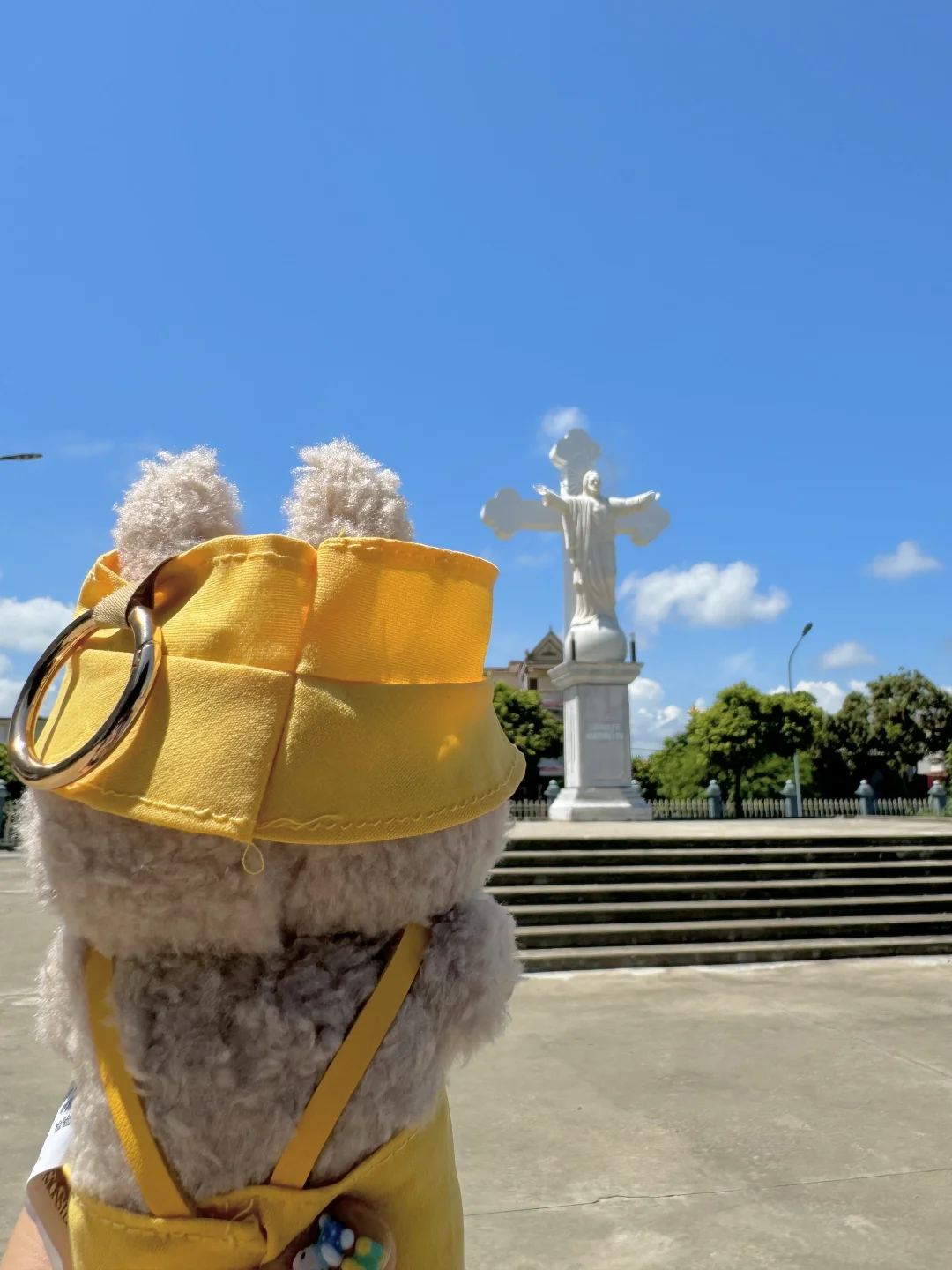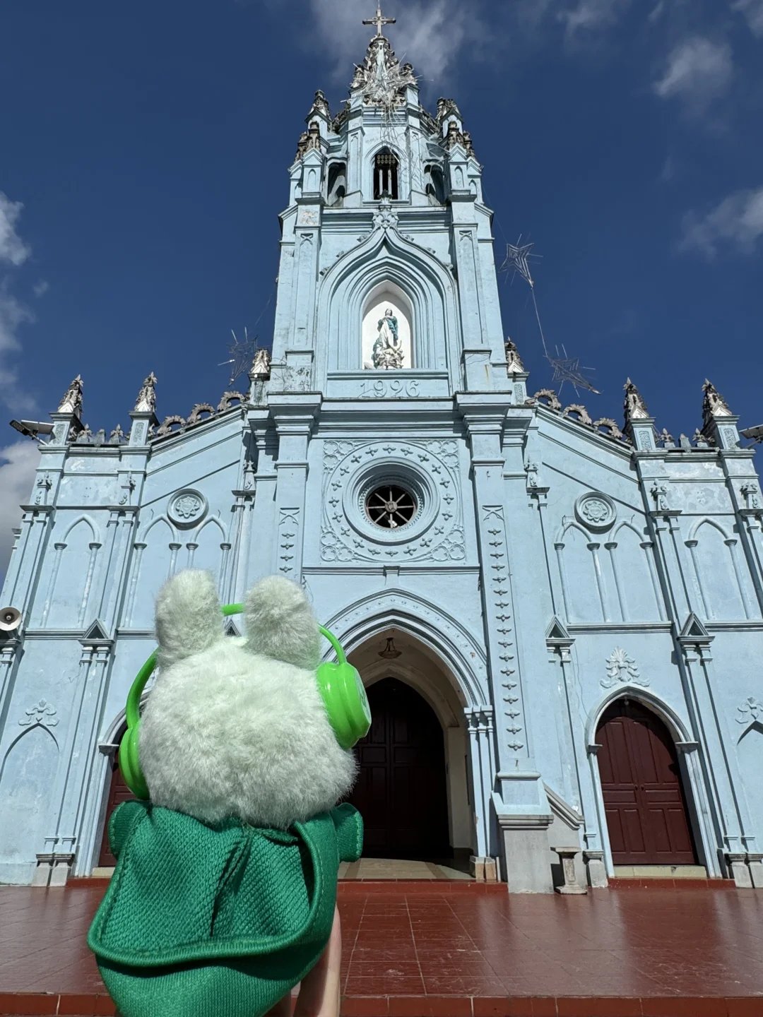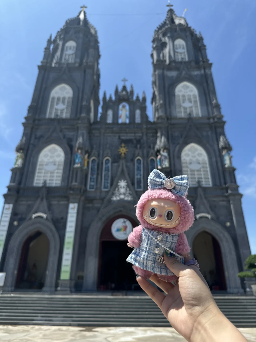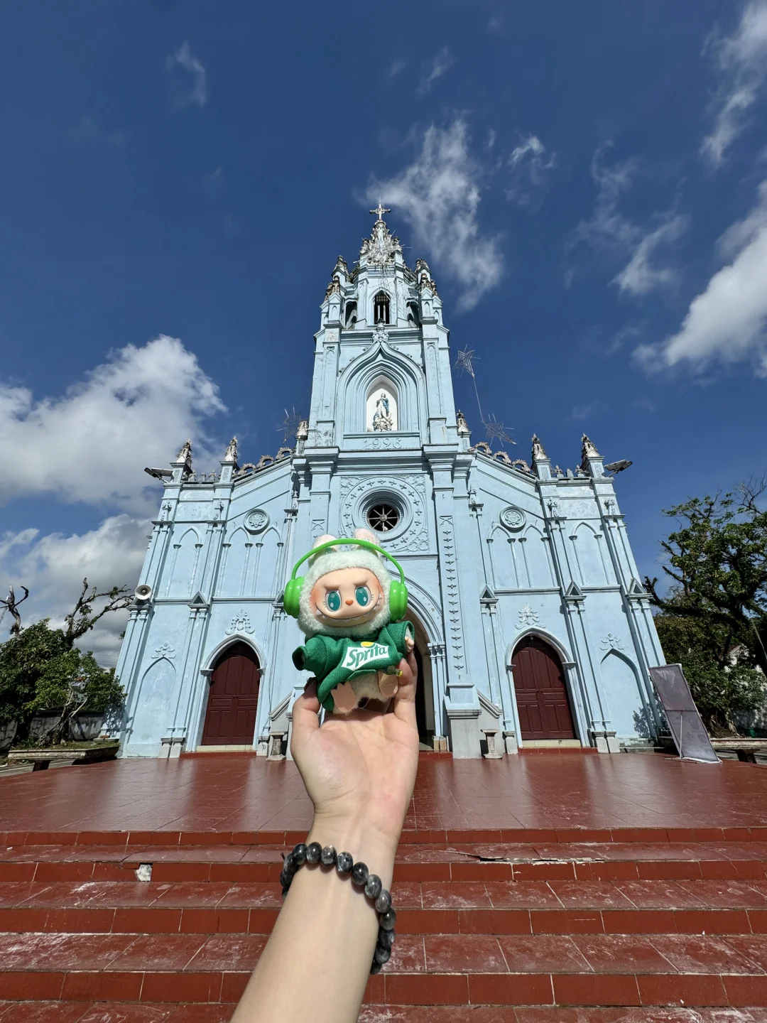 芒街朋友圈可以定位在越南!蓝色教堂那里也可以定位 Labubu带你看世界‼️ - 1⃣️茶古教堂⛪️ 2⃣️越南国门口 3⃣️0公里界碑 4⃣️蓝色教堂⛪️ 5⃣️中越边界线 6⃣️路边警示牌‼️ 出国旅游请带上你的娃这样拍‼️