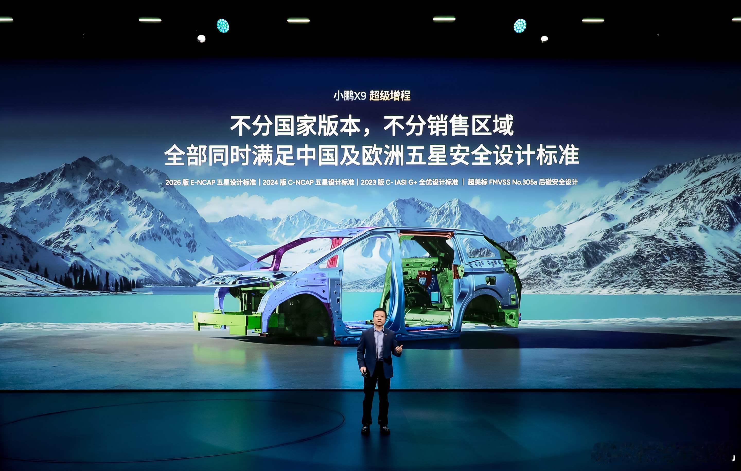 小鹏X9超级增程,以全球统一高标准打造高强安全车身,同步满足2026版E-NCA