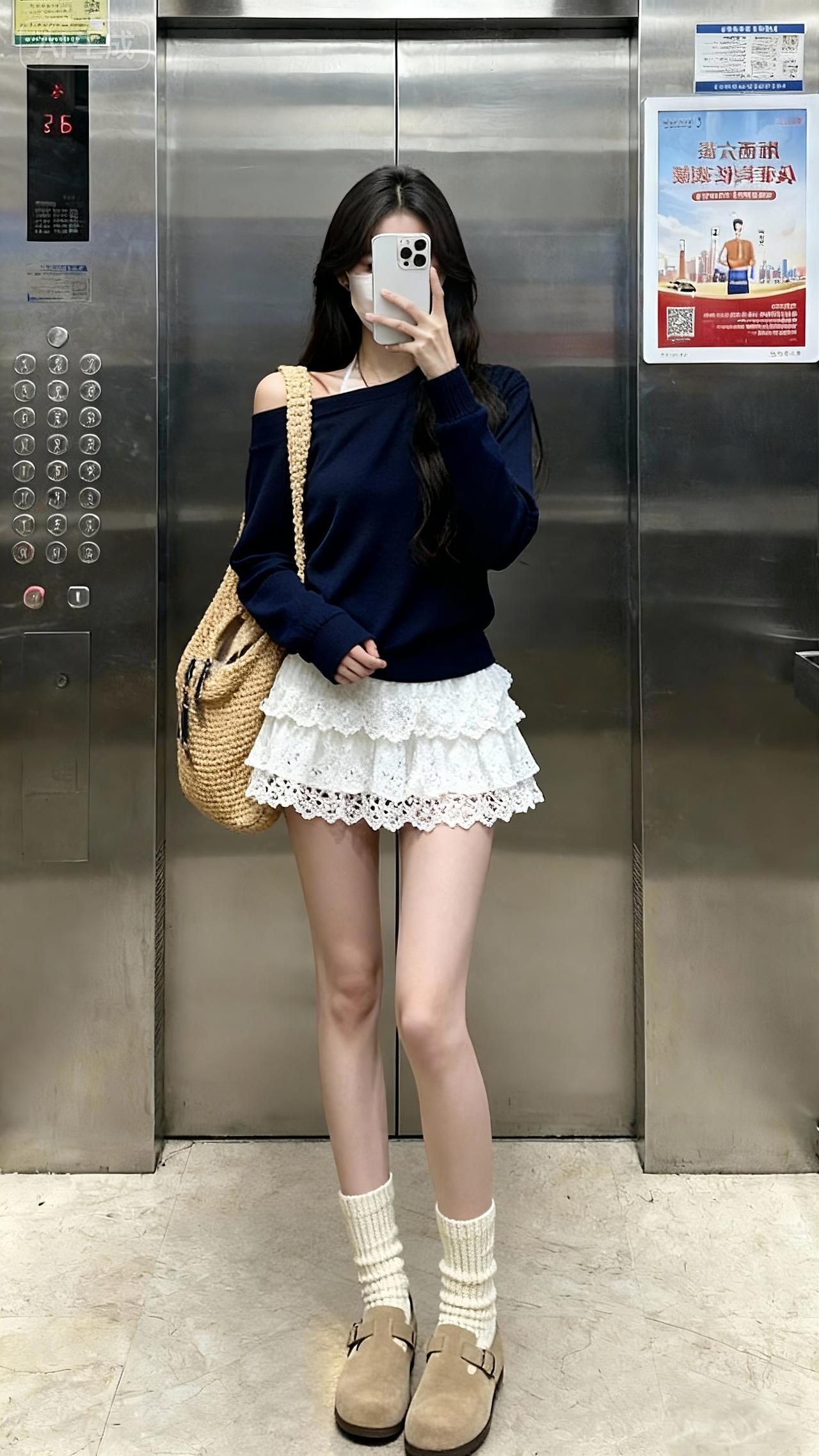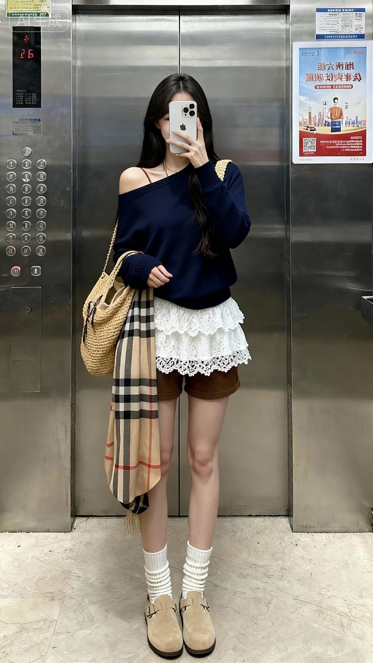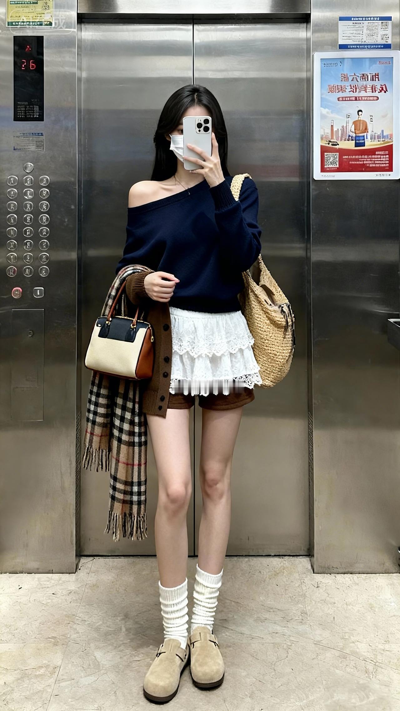 ootd穿搭电梯拍照日常分享小个子穿搭围巾控