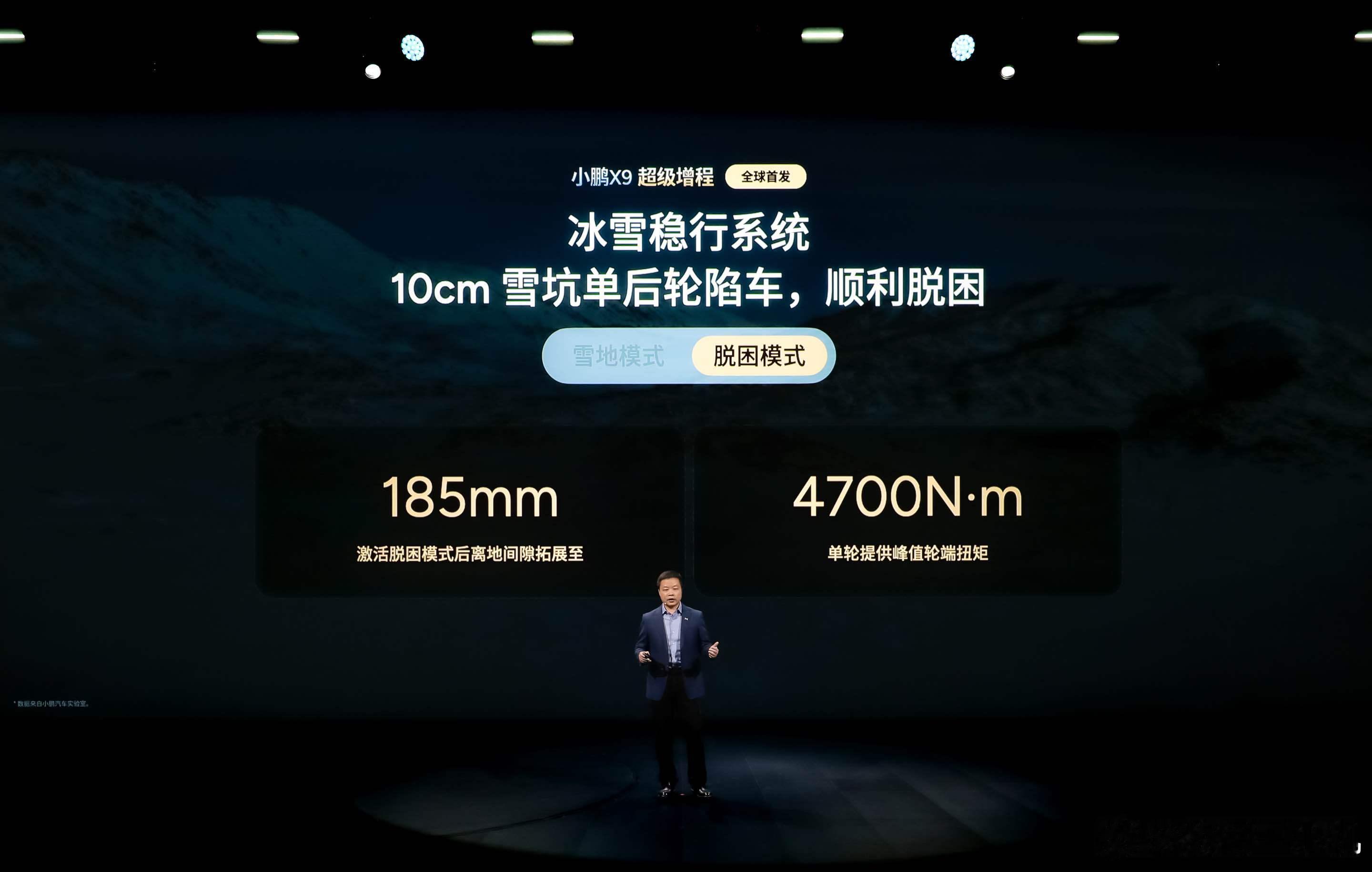 小鹏X9超级增程专为冰雪路况打造的冰雪稳行系统,在通过性、操控性与脱困能力三大维度全面升级。通过185mm最大离地间隙、40毫秒级防侧滑干预和2毫秒级扭矩控制,实现在雪地模式下压实雪面80km/h加速不打滑、10%雪坡爬坡不跑偏的稳定表现。脱困模式下,更可输出4700N·m单轮峰值扭矩,轻松应对10cm深雪坑陷车。为应对北方严寒气候,小鹏X9超级增程搭载的11源热泵智能回收系统,可高效回收动力系统及各部件余热,显著提升冬季续航表现。小鹏X9超级增程还历经800天跨越20国330城的2000万公里全球实测,在暴雨、戈壁、极寒等极端环境中持续验证,并针对雨淋、密封、悬架等系统进行专项强化,展现出全场景出行的卓越可靠性。