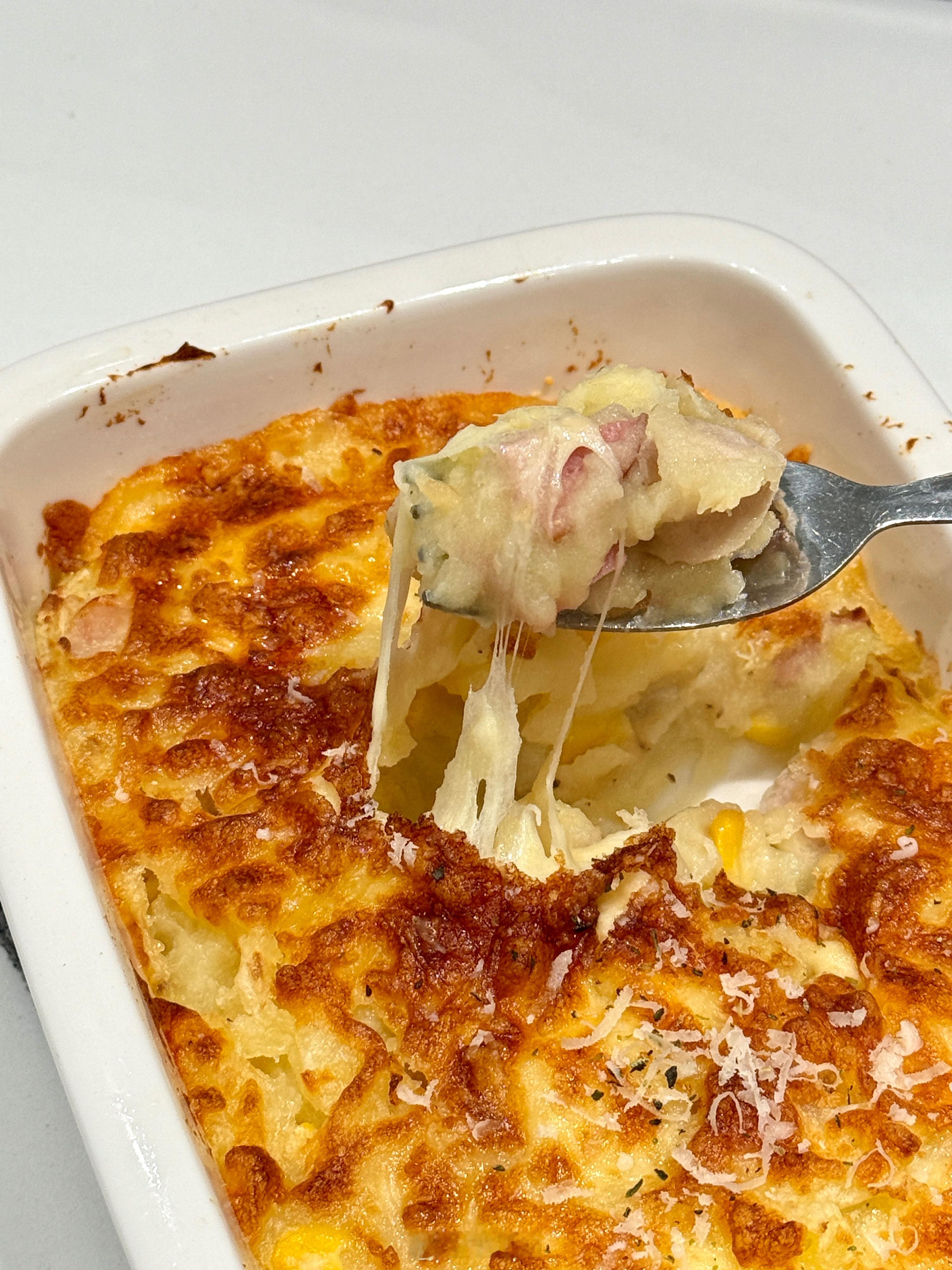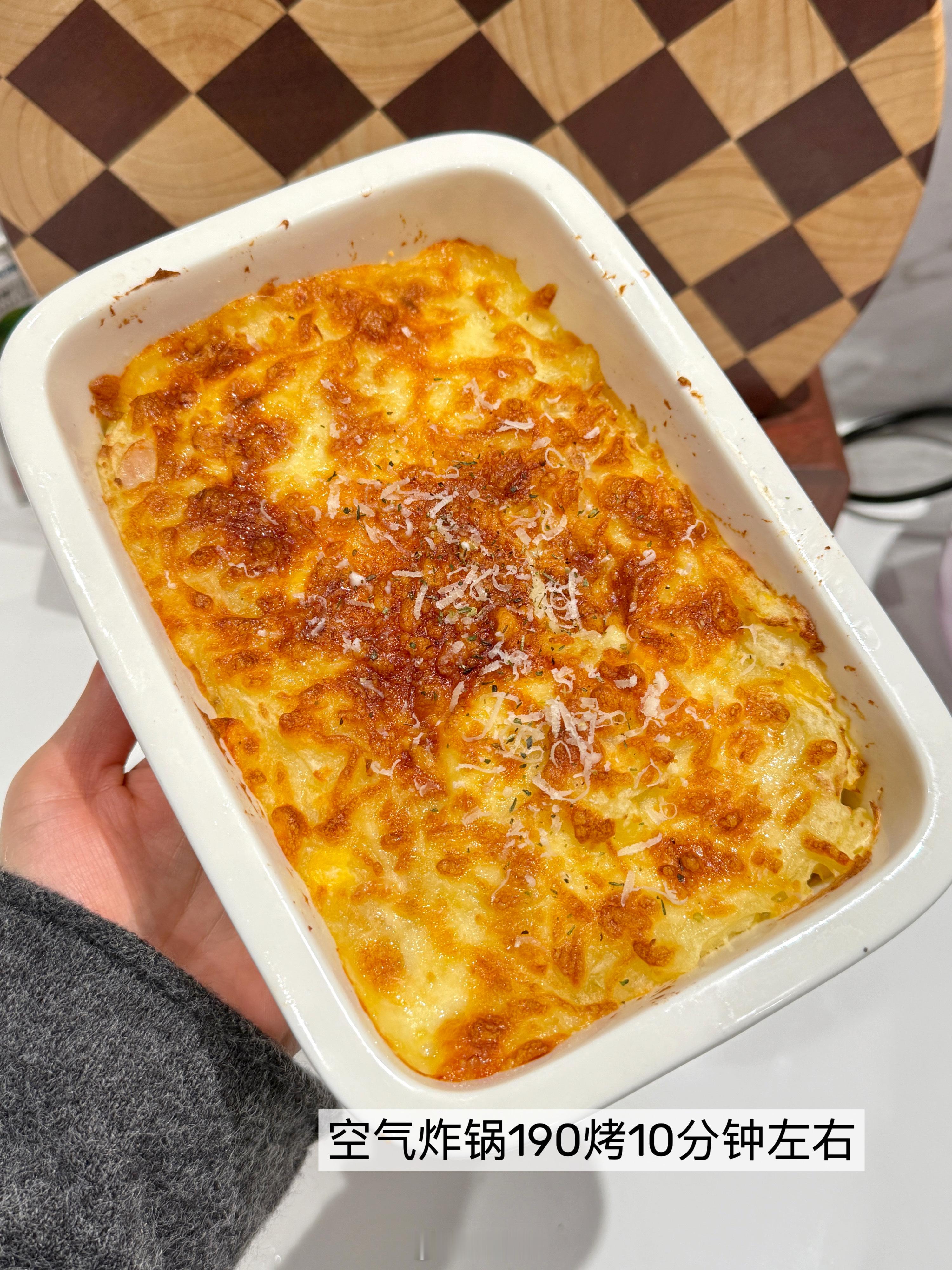 上次在外面吃的这个芝士焗土豆泥特别好吃,回来复刻了一下,加点烤肠肉肠增色不少!