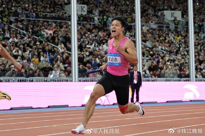 【飞人谢幕!】 11月20日晚,田径男子4×100米接力决赛在广东奥体中心体育场进行。湖北队以38秒60的成绩夺得冠军,东道主广东队获得第四名,担纲第一棒的男子100米亚洲纪录保持者苏炳添结束了自己职业生涯的最后一场比赛。从2006年在香港对抗赛赛场上崭露头角,到2025年十五运会的精彩谢幕,苏炳添兑现了自己“跑到跑不动”为止的诺言。(人民日报)