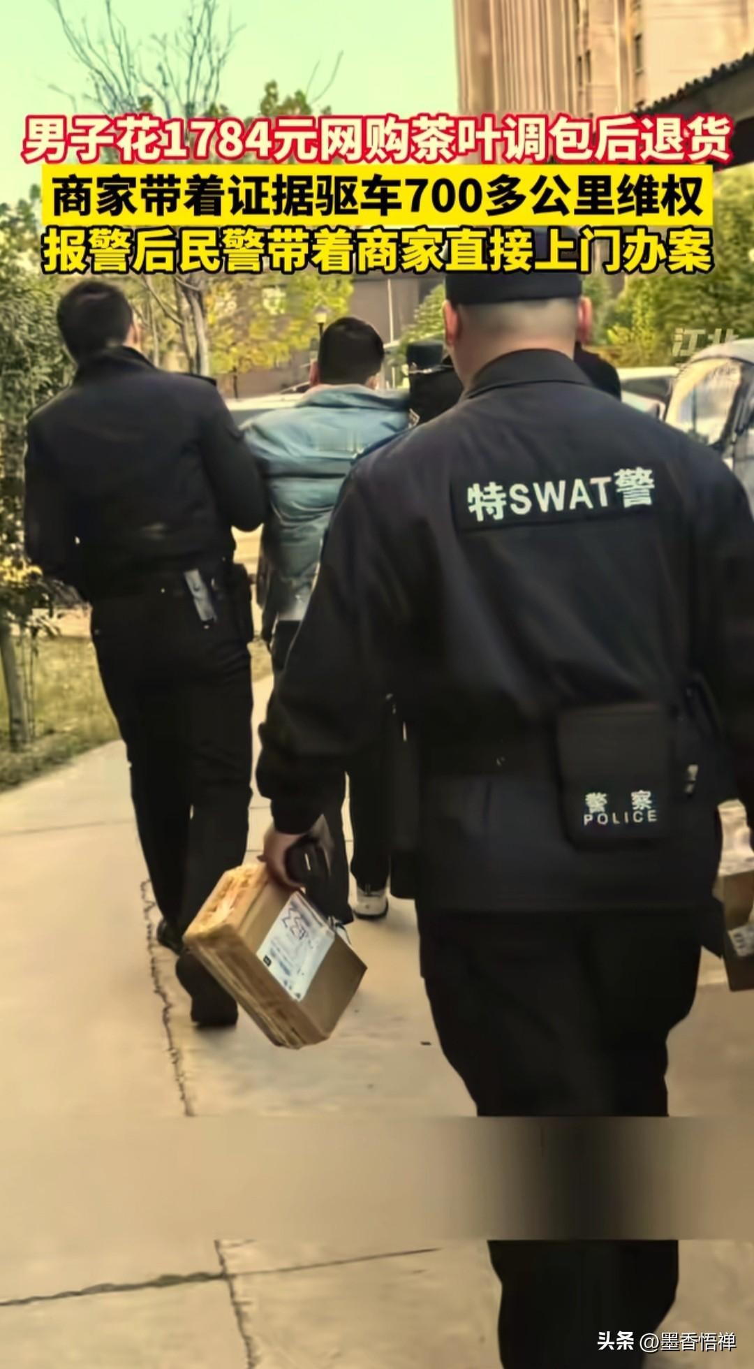 男子网购1784块钱茶叶掉包退回,网店女店主带着证据驱车700多公里上门硬核维权,报警后民警带着店主直接上门办案。 女店主说有一位河南许昌的王先生在在线上买了她的茶叶,价值有1784块钱的,过了几天男子线上申请了退货退款,店家也同意了。 收到货之后,发现几款茶叶包装都被拆开了,里面的茶叶也换成了市面上50块一斤的茶叶,店主看到后气不打一处来,决定去男子家里维权。 店主晚上睡了四个小时的觉,早上六点就带着男子退回来的茶叶和交易的证据,和朋友一起开车去河南许昌,在路上女子发视频说,这名男子昨天还在评论区说给他200万他就出面。 店主说她们做生意也不容易,这人一张嘴就是200万,所以这次不想放任他,她这边如果不追究了,以后小店家维权更难,不能助长他们不劳而获的风气。 经过七个多小时的长途跋涉,到了河南许昌,她们先去当地辖区派出所报了案,派出所立了案。 民警带着店主到了男子家里,一进门就发现了被掉包的茶叶,和她自己带的茶叶一模一样,男子也对自己的行为供认不讳,被带回派出所调查。 女店主后期回应说,该男子已经行政拘留,她去的时候本来也没抱什么希望,没想到当地民警也非常给力,办案速度也非常快,专门送了锦旗给民警表示感谢。 当她看到该男子家里有老婆和孩子,也觉得都不容易,就同意签署了谅解调解书,男子承担她们几人去许昌来回的费用和茶叶费,目前男子还在拘留中。 淘宝退货纠纷 买茶被骗