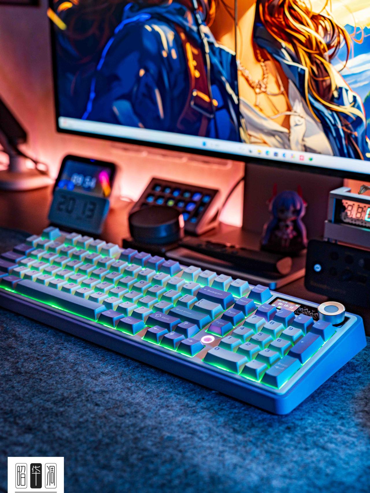 又有屏幕又有灯、98配列小卷王丨黑爵AK980 🌿卖点参考 2U0 98紧凑配列、GASKET结构、FR4双面沉金定位板、5层消音填充、1.14寸TFT彩屏、金属旋钮、8000毫安电池、RGB背光 🆔 键盘型号 黑爵 AK980 雾川海 ♻️外形布局 挺少见的2U0 98配列,其实就是略带变形的98键布局,4个功能键被巧妙的安排在数字键旁边,空出的右上角正好放下屏幕和旋钮,实现了更为紧凑的键盘设计。对于既需要键盘的全面功能又对尺寸有特定要求的用户来说,这可能是最优方案了。 💟 推荐理由 ① 黑爵算是和屏幕杠上了,新出的外设几乎全都带屏幕(当然,如果你不喜欢屏幕,也可选择这个系列的199元版)。键盘右上的彩屏可以显示时间、连接模式、电量等参数,也可以利用驱动自定义 GIF 动图,配合旁边金属旋钮,操作杆直接拉满,实用性也是相当到位。 ② 配置绝对良心,GASKET结构+开槽FR4双面沉金定位板,既保证了软弹手感,又做到了良好的一致性,敲击时的声音也更加集中。而且键盘内部采用的5层填充,PO夹心棉+IXPE轴下垫+PET垫+PO轴座棉+底部硅胶垫的组合,让手感更加扎实,也能最大避免空腔音的产生。 ③ 原厂PBT键帽做工还行,除了壁厚稍薄没啥大问题,配色也都是耐看的经典色系。轴体方面比较推荐美拉德轴和礼物轴,前者声音好听,后者类似樱桃红轴,3.3mm全行程,2.0mm按压行程,按压手感顺滑,回弹迅速声音小,适合打字和游戏。 ④其他配置也中规中矩该有的都有,三模连接、键线分离、两段式脚撑,灯光走的下灯位,支持1680万色的RGB灯光,喜欢光污染的绝对适合。199元版标配4000毫安电池,多加60就能升级到8000毫安+自选轴体,性价比高出不少。 总结 配置和功能都没啥短板的键盘,GASKET+5层消音填充保证了敲击体验,音量旋钮+液晶屏实用且炫酷,三模、PBT 键帽、轴体、配列也很有诚意,还有8000毫安带来的超长续航。199 的价格性价比拉满,很适合新人入门或者老手买来当套件折腾。