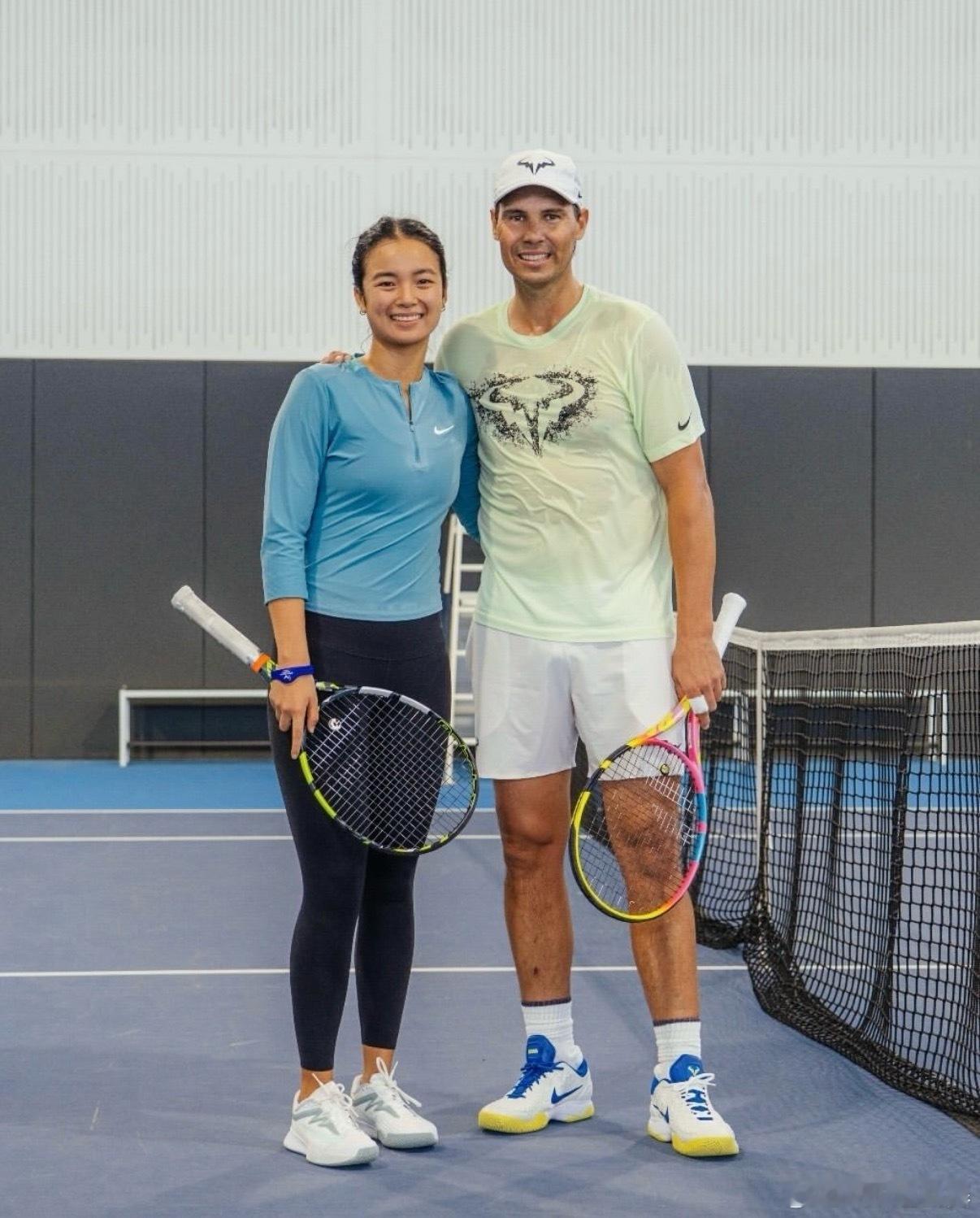 重返球场🎾西班牙天王纳达尔在个人网校与菲律宾新星伊埃拉合练🙌图片来源:rafanadalacademy