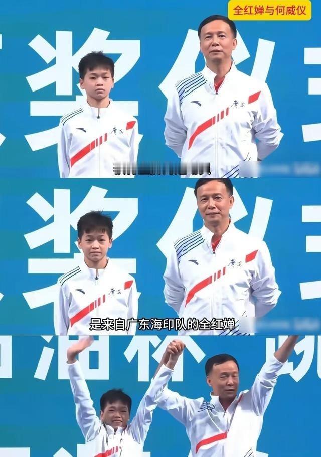 最疼全红婵的人,不是她的教练陈若琳,不是她的伯乐陈明华,也不是她的启蒙教练郭艺,而是一直陪在身边的他。 郭艺最早推荐全红婵给广东省队教练何威仪,当时拿着照片和视频去办公室说服。何威仪起初没看出特别天赋,拒绝了,但第二天看视频后发现她空中控制强,入水标准,就同意收下。从那起,何威仪成了她的主管教练,负责日常训练和技术指导。 何威仪是广东跳水资深教练,从运动员转行,已干了四十多年,带出不少人才。他不只教全红婵跳水技巧,还管生活细节,比如饮食均衡,长身体。外出比赛时,他帮收拾行李,教怎么面对媒体,从最初她怯生生不敢说话,到现在自信大方,都是逐步引导出来的。 粉丝送礼物,他总在后面帮忙拿着,像老爸一样护着。闲时带她散步,聊待人接物,帮她克服自卑,建立仪态。全红婵从乡村小孩变少女,这些变化离不开他的打磨。 何威仪老婆和女儿也常来队里,女儿跟她玩得像姐妹,他视她如己出,训练严但细心。师徒俩在赛场总形影不离,哪里有她,哪里就有他支持。 全红婵进入国家队后,主教练换成陈若琳,何威仪留在省队,但联系没断。陈若琳是奥运五金王,经验丰富,帮她解决技术难题。何威仪对这安排挺高兴,说陈若琳经历过类似问题,能带好她。 2021年全运会后,全红婵适应新教练,但偶尔不习惯“何爸爸”不在身边。两人仍保持沟通,何威仪不时给建议。巴黎奥运,全红婵卫冕成功,何威仪在采访中夸她进步大。今年她短暂回省队,师兄谢思埸接手指导,何威仪退休在即,但还关心她训练。 谢思埸说何威仪像父亲,不仅训练严,生活上也照顾。奥运后,何威仪和全红婵一起获赠汽车,她在活动中显得累,但这份师徒情深。网友常说,何威仪没让这颗明珠蒙尘,他的功劳大。何威仪点评爱徒时,总说她勤奋,眼界开阔,以后路还长。