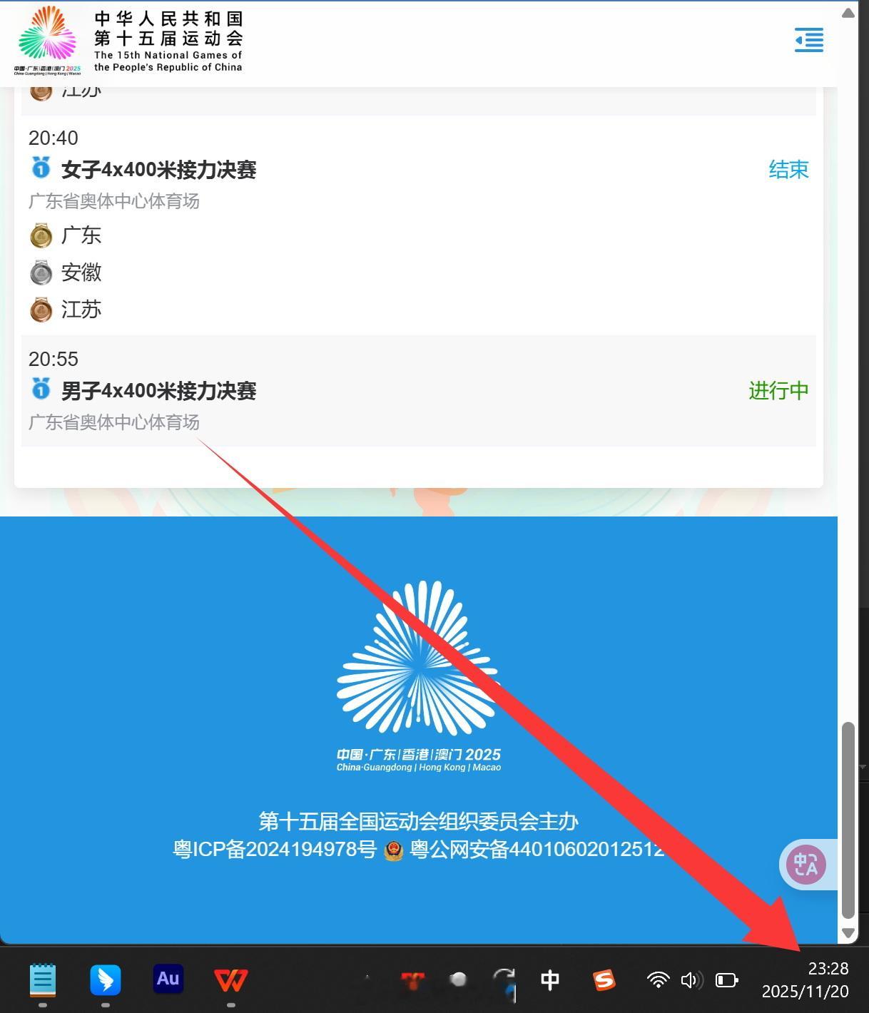 2025第十五届全运会男子4x400米接力。田径最后一项,大概是不舍得结束吧。第一枪结果如图,要重赛。