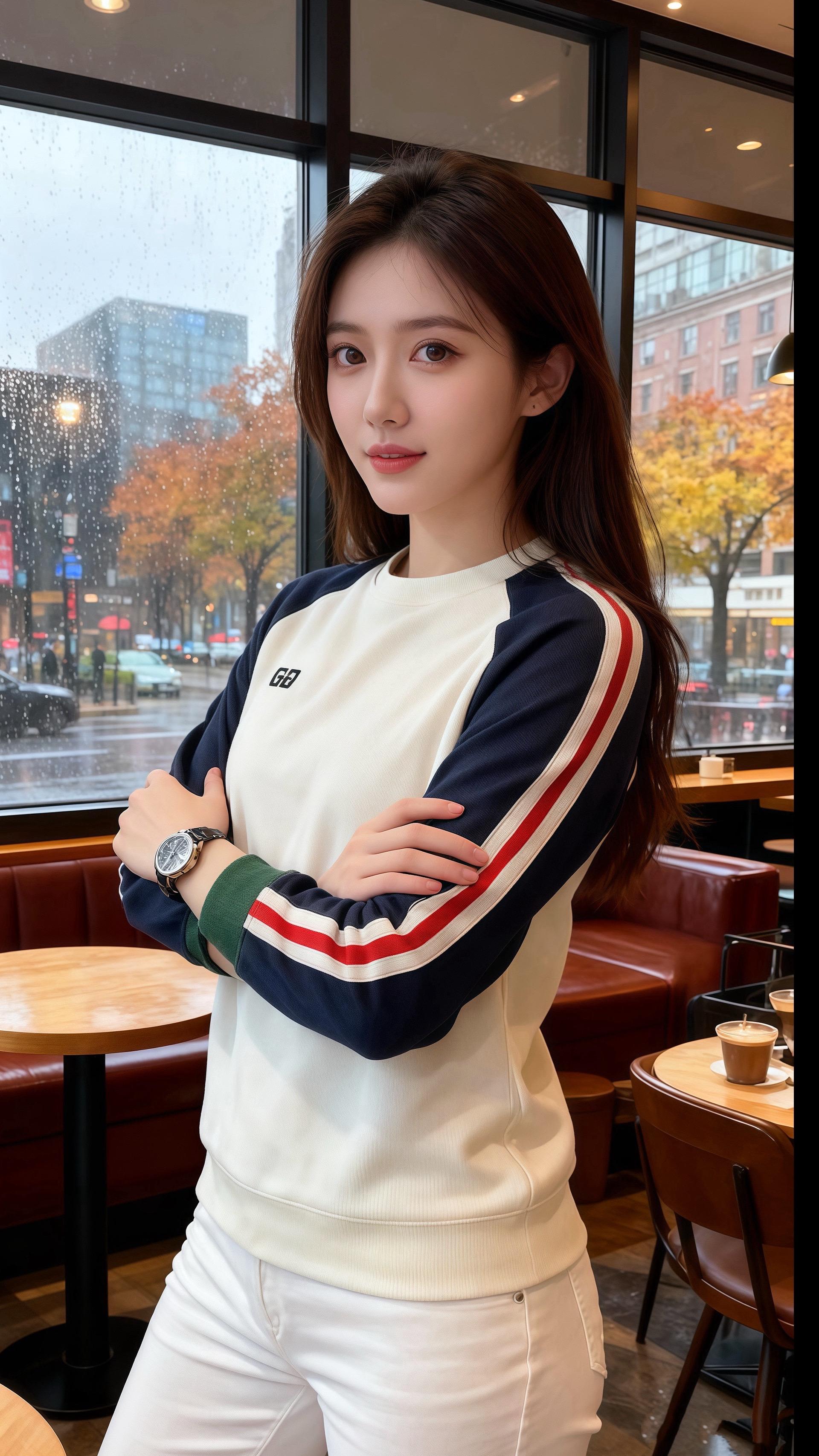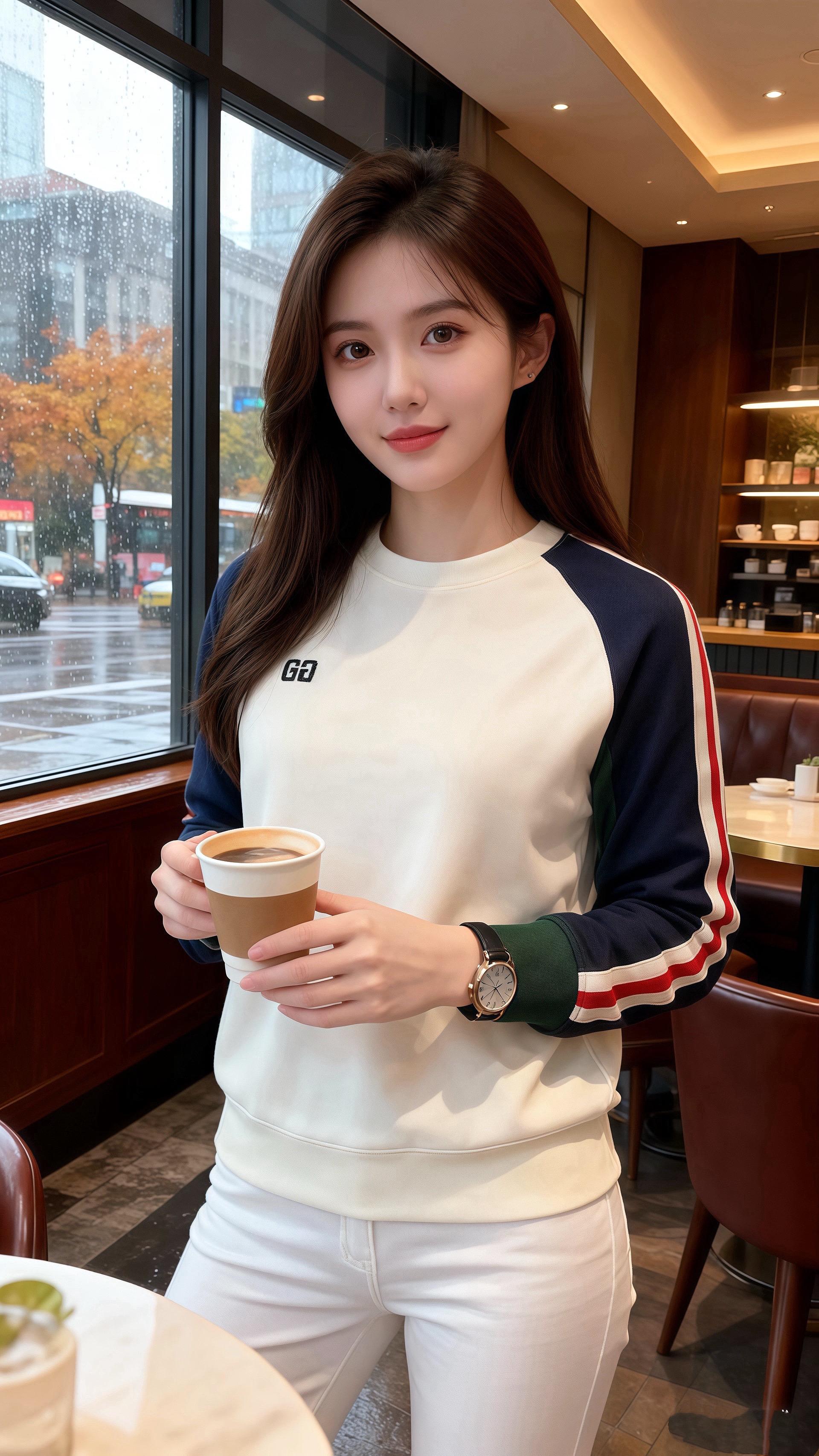 他在对面落座,袖口露出的绿边蹭过咖啡杯沿,像把秋意折进了布料里。“你这件卫衣……”知意听见自己声音发轻,“很衬今天的雨。”