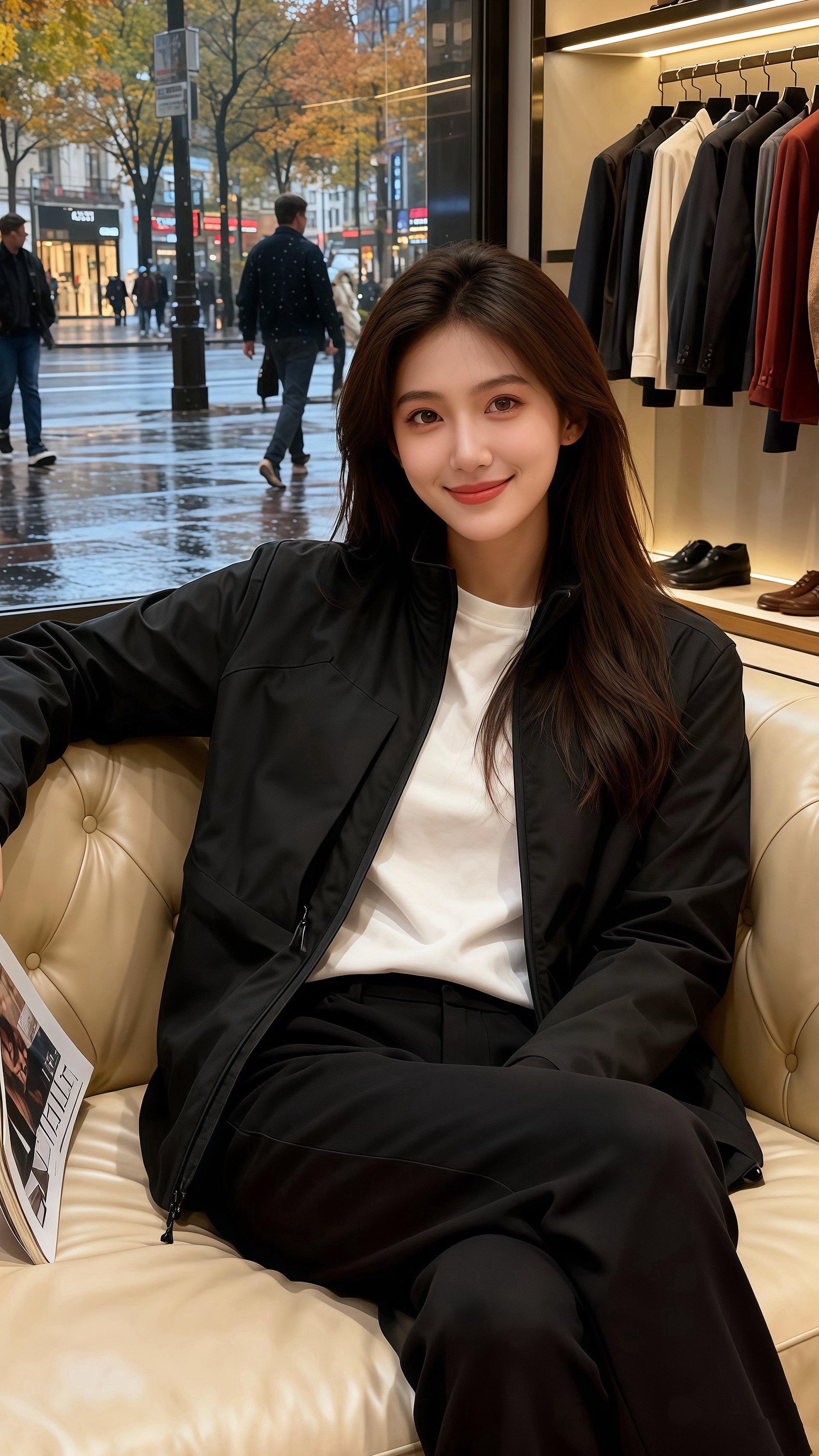 秋雨裹着梧桐香漫过橱窗时,许妍正坐在男装店的沙发里翻杂志。皓明推门进来时,她指尖的书页顿了顿——他穿的藏青夹克,衬得肩线像被秋阳熨平的风。