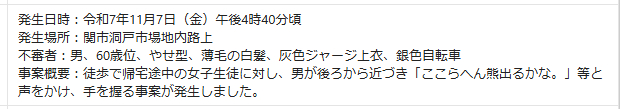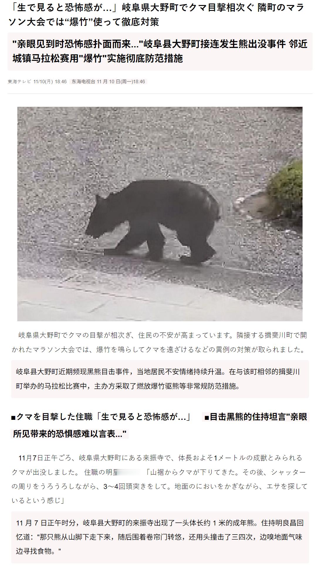 🔻日本岐阜县公开“熊出没目击地图”,标注危险区域。🔻但是,这个地图不仅标注熊踪还标记变态骚扰者出没地点。🔻熊和变态都太多了,简直成了“勇敢的变态们阻止熊群进攻的局面正在上演”。🔻值得一提的是,关于变态事件,甚至出现了利用熊出没情报反其道而行之的高智商犯罪型个体:一名女学生在回家途中,一名男子从她身后走近并说道:“我想知道这附近有没有熊”等言语,随后强行握住她的手。