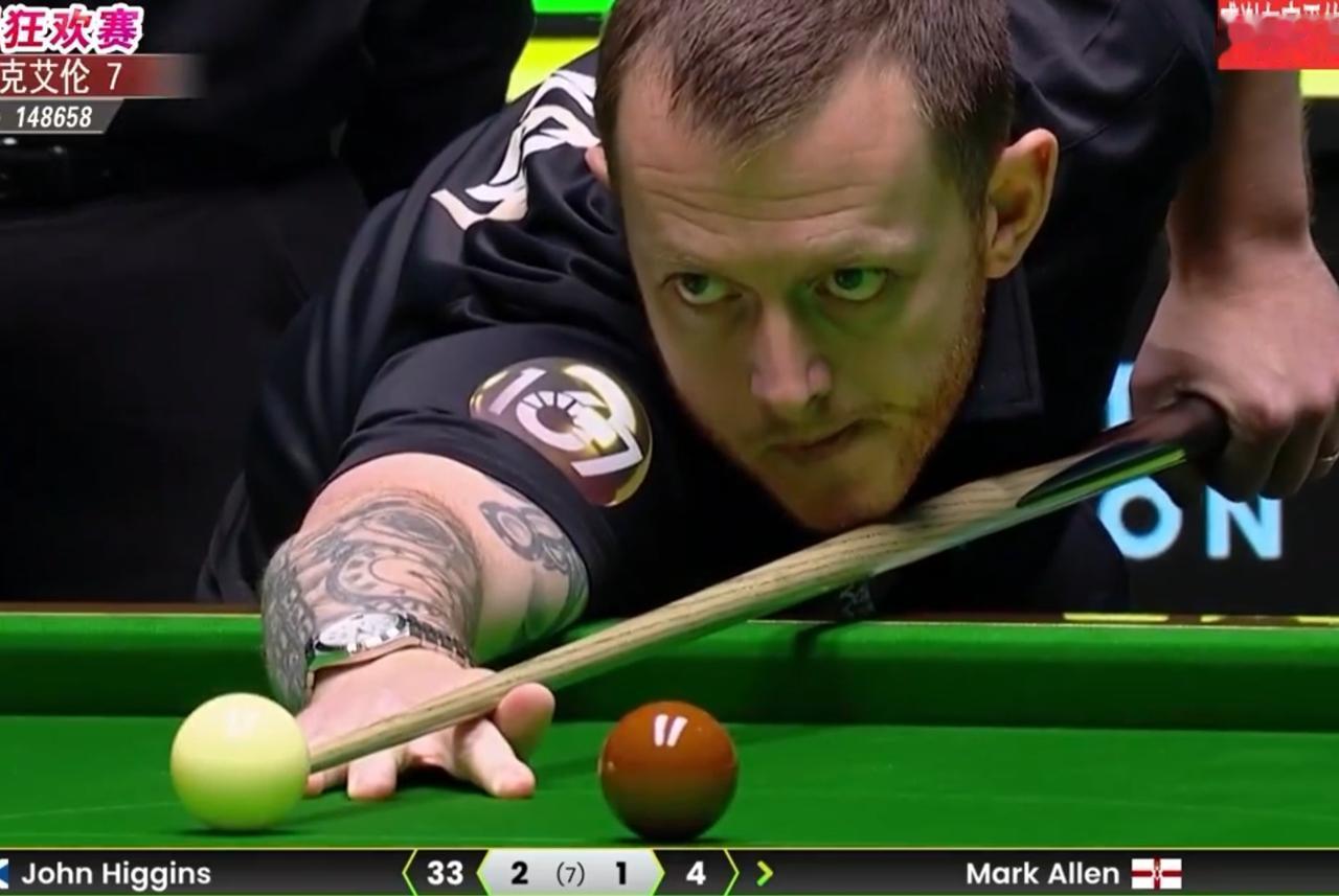 卫冕冠军晋级 巫师皱眉搔耳 狂欢夜第二场四分之一决赛 马艾伦4:2胜希金斯,卫冕冠军又进四强。 马艾伦两次冲击167,分别打了五套和六套红黑组合后失败。 两人还贡献了近十八分钟一球未进的防守大战,金球仍在的场景,与艾伦打要有持久战的心理准备。 丁俊晖应该向艾伦学习,对付巫师不宜操之过急。