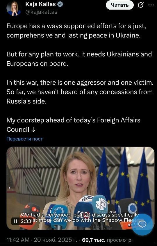 欧盟负责外交事务的负责人卡拉斯说,她正在等待俄罗斯的让步,但还没有等到。她还表示,和平问题应该在欧盟的参与下进行讨论,尽管她自己的话是两个国家(乌克兰和俄罗斯)的冲突。