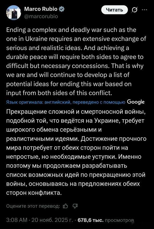 美国国务卿马可·鲁比奥表示,莫斯科和基辅必须做出艰难但必要的让步,以达成和平条约