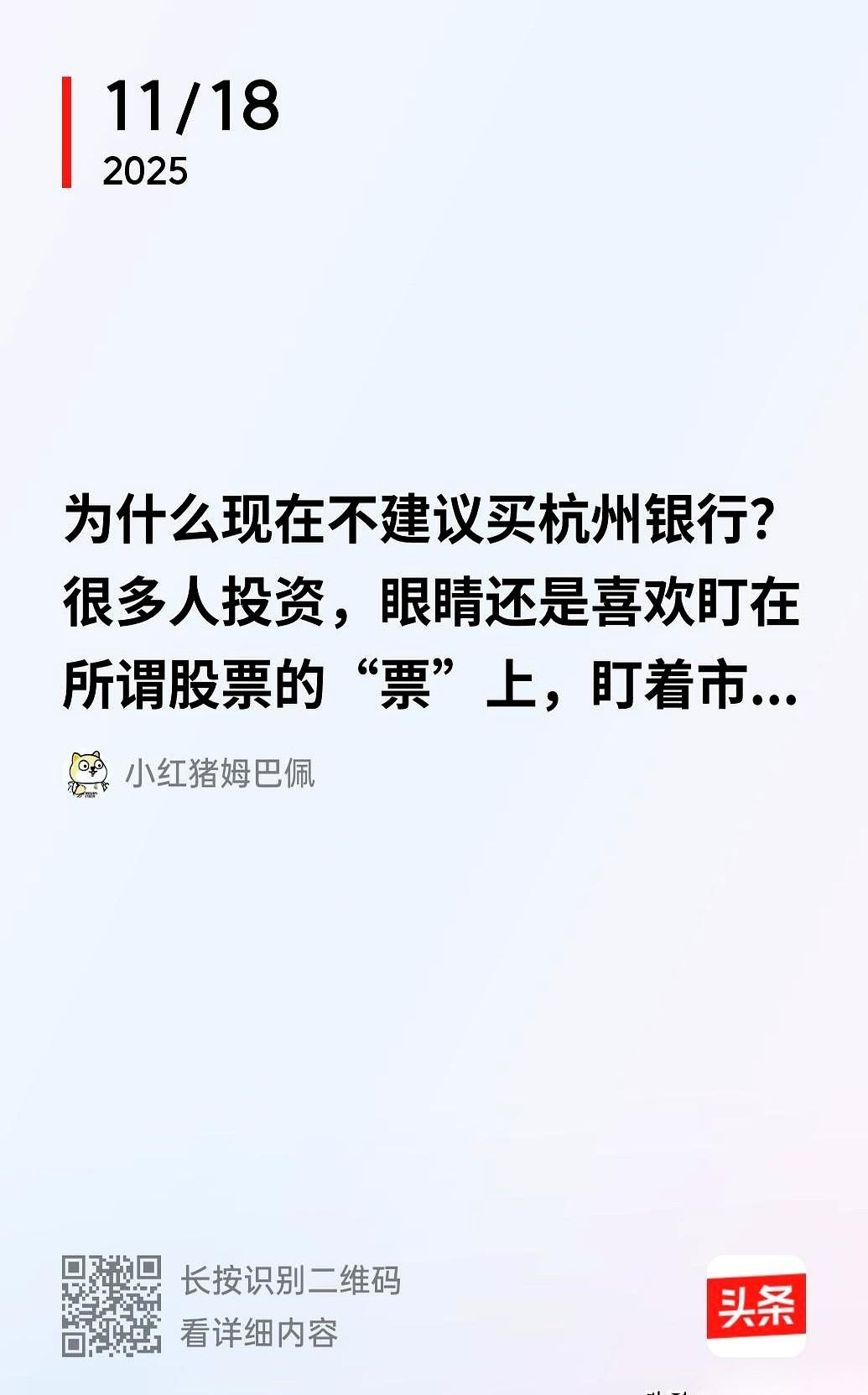 29块,我把宁波银行清了。 一干二净。 很多人不理解,说还没到头呢。嗨,股票这玩意儿,谁能真吃到头?我本来就没打算跟它谈一辈子恋爱,就想着挣个买菜钱。 我这人没什么大本事,就是有点自知之明。鱼头鱼尾,肉最少,刺最多,我从来不碰。我就吃中间那段最肥的,吃完了,抹抹嘴走人。剩下的,留给更勇敢的人去啃。 你得抬头看看天,再低头看看地。 天是什么?是行业里那个最大的腕儿,农行,已经涨得有点让人恐高了。大哥要歇了,你个当小弟的还能自己往上冲?不现实。 地是什么?是你旁边那个难兄难弟,杭州银行,还趴在坑里喘气呢。 你想想这个画面: 一个大哥在山顶吹风,随时可能打个喷嚏。 一个小弟在山脚躺平,能不能爬起来都是个问题。 你被夹在中间,不上不下。 你说,你还能有多大的想象空间? 所以啊,有时候卖一个票,不是因为它不好了,纯粹是因为它的故事,短期内讲到头了。天花板和地板,都被别人给你钉死了。 见好就收,睡得安稳。