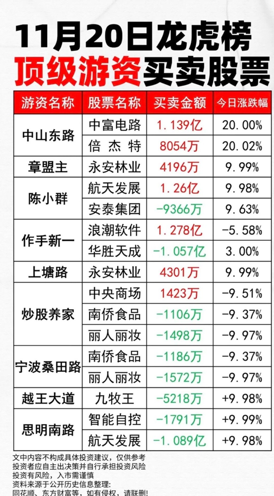 11月19日 成交活跃 游资龙虎榜!有一部分带反制概念表现,另外就是福建海峡两岸,今天合富中国复牌再次涨停,带动福建板块大涨,多家游资共同抢筹。