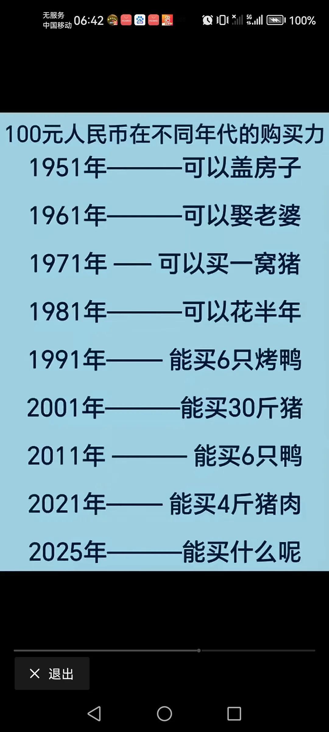 100元人民币在我国不同年代的购买力 一百元在六十年代的时候可以娶老婆了 在五十年代的时候一百元可以建房子了,太厉害了吧! 近期的物价,一百元只能买十五斤的西红柿,真是时代不同,结果发现大不同啊!以上仅供参考,属个人意见!