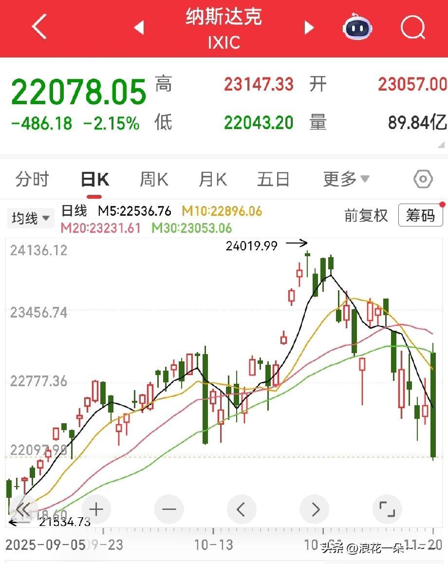 一大早,懵逼了! 美股来了个大阴棒,我昨天晚上看的时候还高开两个多点,高兴的差点