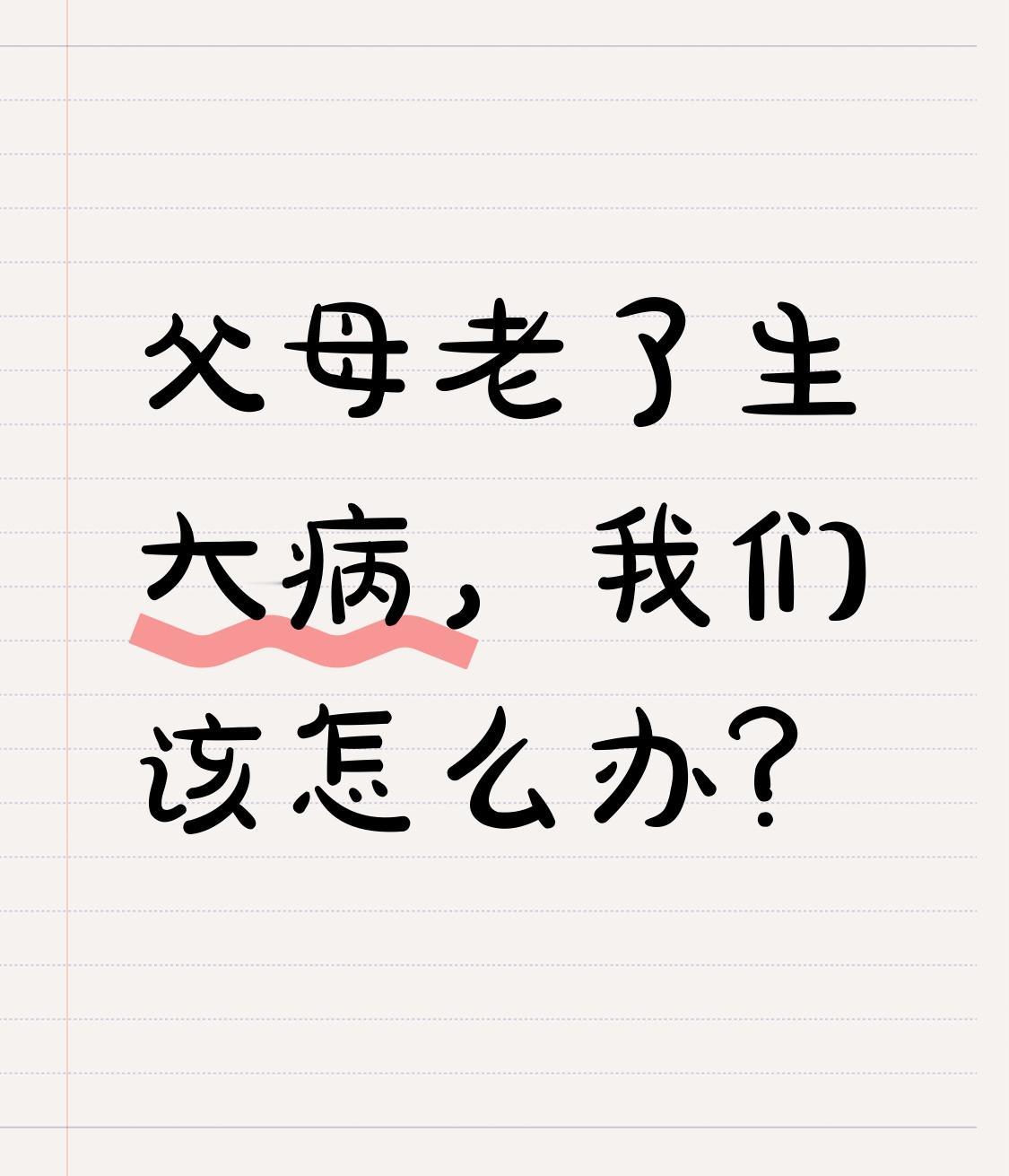 父母老了生大病,我们该怎么办? 我爸跟我说, 等他将来老了,生了大病,就不治了。他遭罪,钱也遭罪。 说是这么说, 但如果真的病了, 我们小辈能怎么办呢, 真要是按他说的不救, 心里这关是真难过, 可要是救了, 用4个人的全部身家换一个老人痛苦的苟延残喘几年。 日子注定也是难过,两头不是人。 在我父母已经明确发表意见之后, 这个问题依旧是无解的。 试问多少人在弥留之际真的可以做到放下对生的追求呢。 所以把这个问题终结在我这一代, 就是我能想到的最好的解决方法。大病治不起 假如得了重病