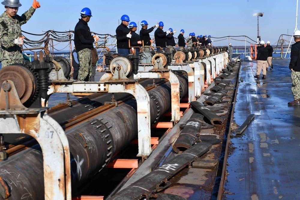 正在大修的美国海军斯坦尼斯号航母(CVN-74)安装蒸汽弹射器。