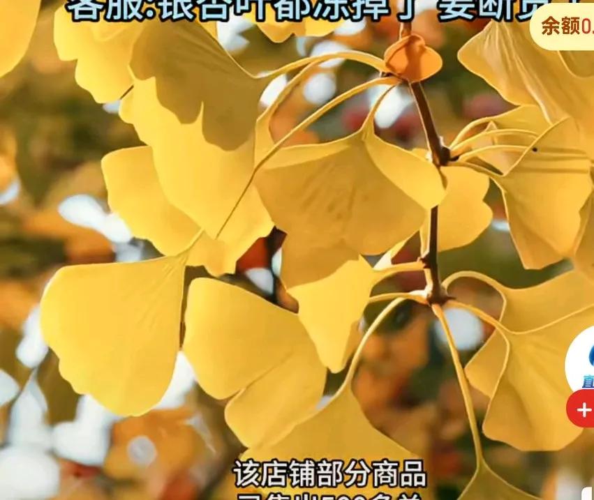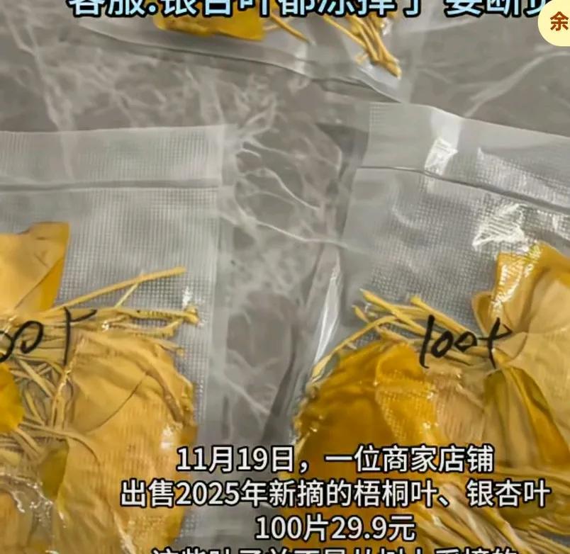 29.9元可网购100片银杏叶,夜变商品捡的也能卖钱,枫叶梧桐叶均有售卖, 商家爆卖500单, 客服说, 因为现在气候变冷, 银杏叶都冻掉了, 马上要断货了。 商家店铺出售新鲜的枫叶, 梧桐叶,银杏叶, 说这叶子不是从树上摘下来的, 而是从各大公园捡来的。 看来只要肯动脑, 什么都有商机。 网友说,我赶紧去捡点儿, 9块9卖给你们,有谁要呀?